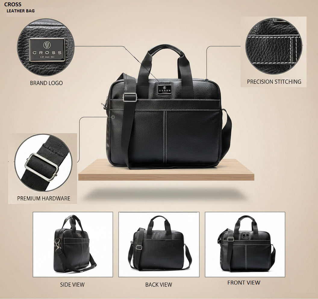 Cross Mens Black Rozano Style Shoulder Side Laptop bag