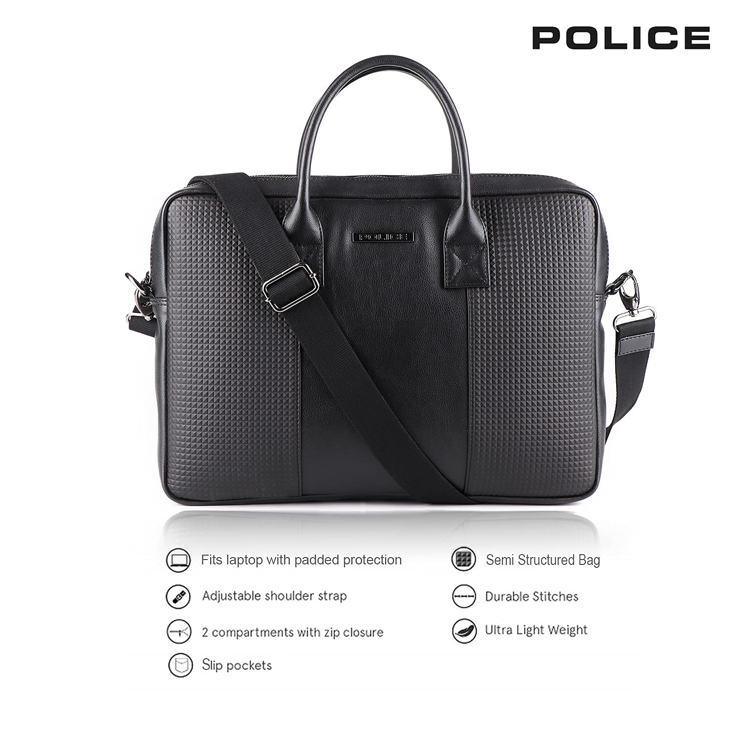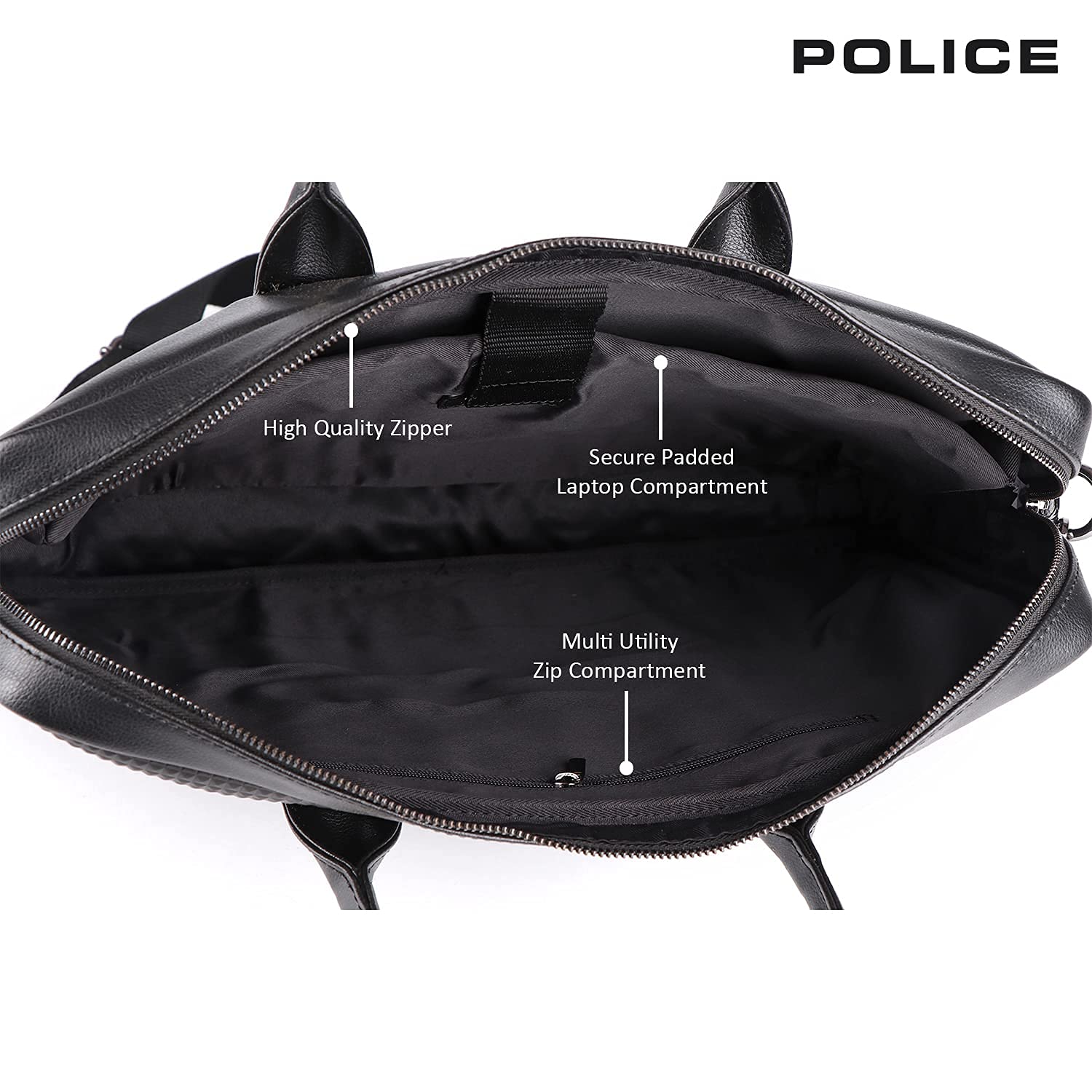 Police Tyburn 15 Inch Briefcase Laptop Bag for Office use - Black