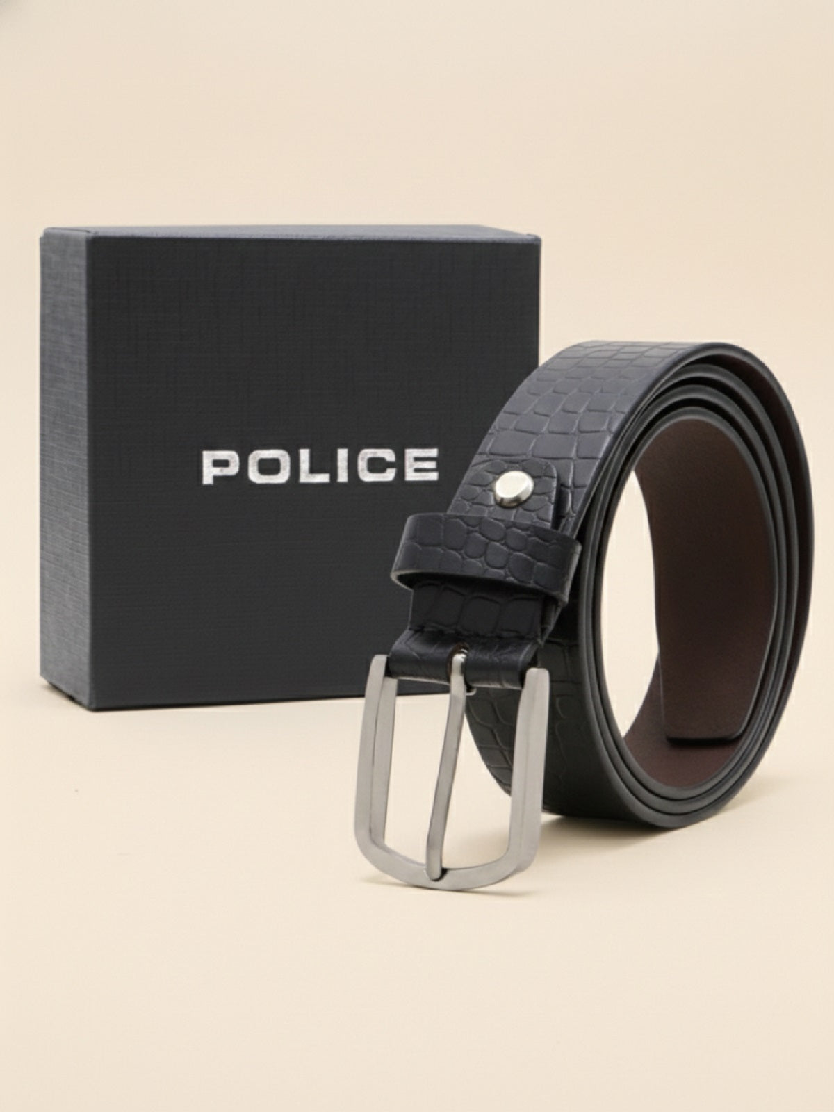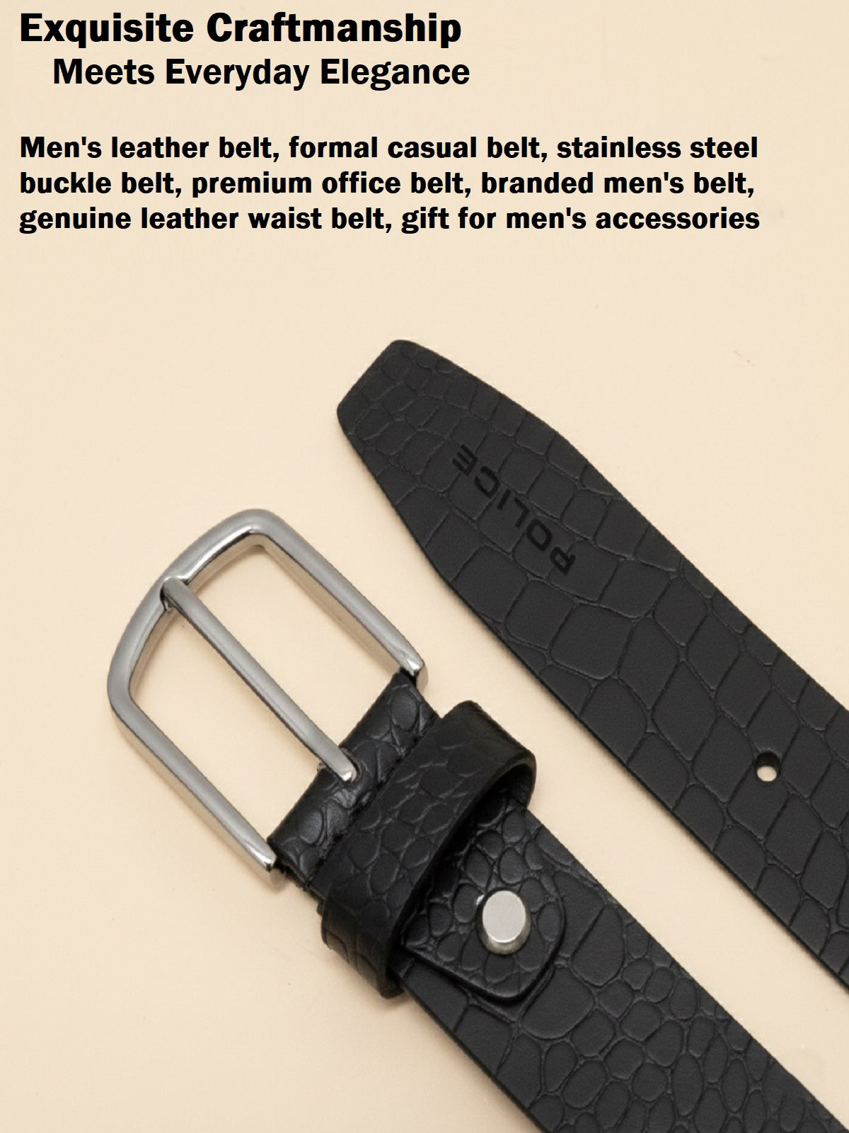 Police Men’s Classic Croco-Textured Leather Belt in Black