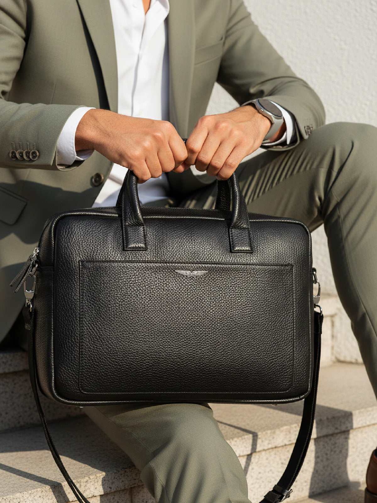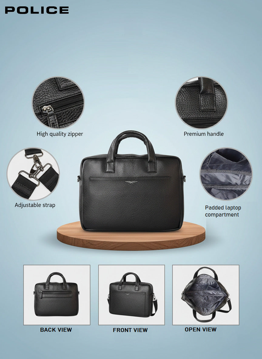 This Laptop Bag Comes With One Main Compartment And With Two External Slip-In Zipper Pocket at Front Part. Back Side One Zipper Pocket And With Trolley Strap. Inside Back Wall Laptop Compartment , Inside Front Wall Two Slip In Pocket. It Has Detachable And Adjustable Shoulder Handle.