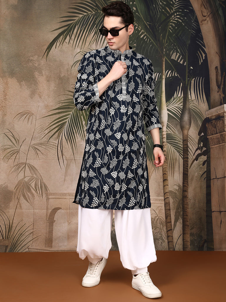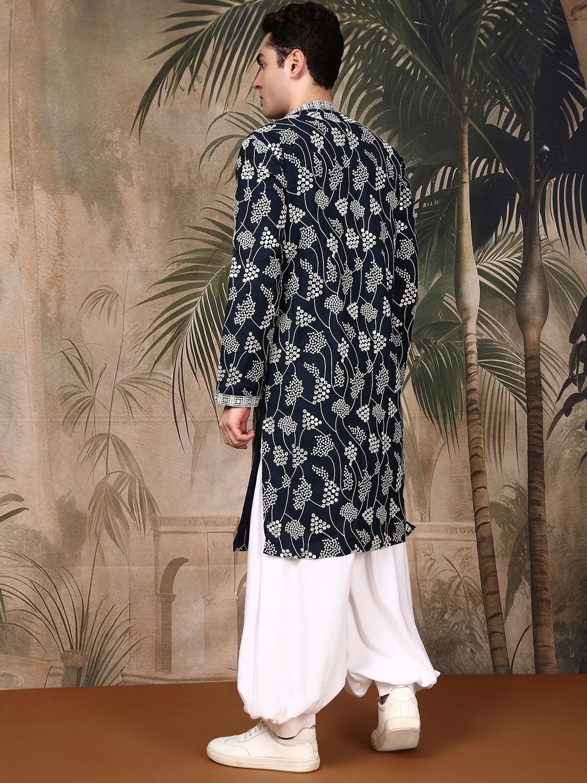 Sanwara Classic Deep Blue Kurta Set for Men with Minimalist Embroideryand Finest Sequins work,Ideal for Diwali, Navratri & Ethnic Wedding Wear
