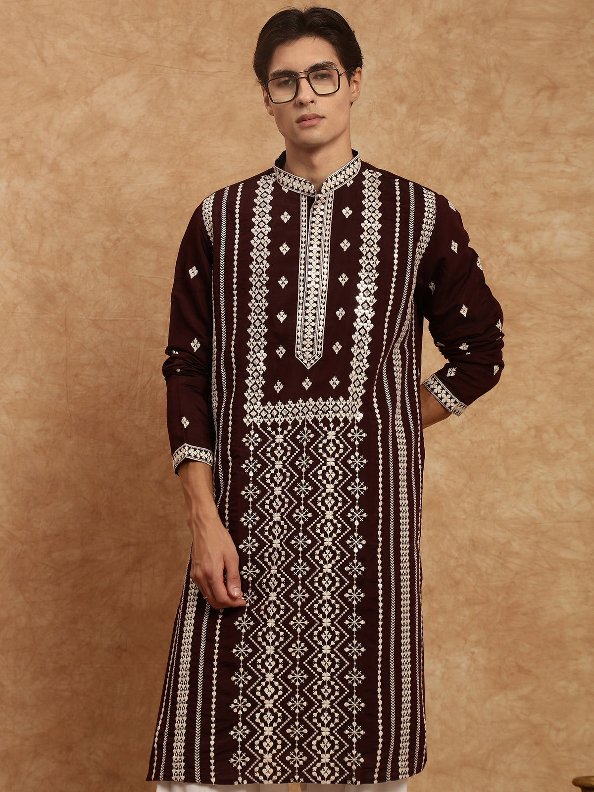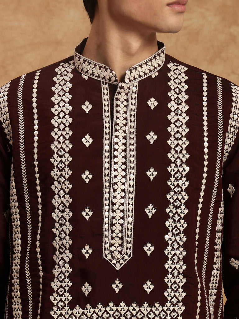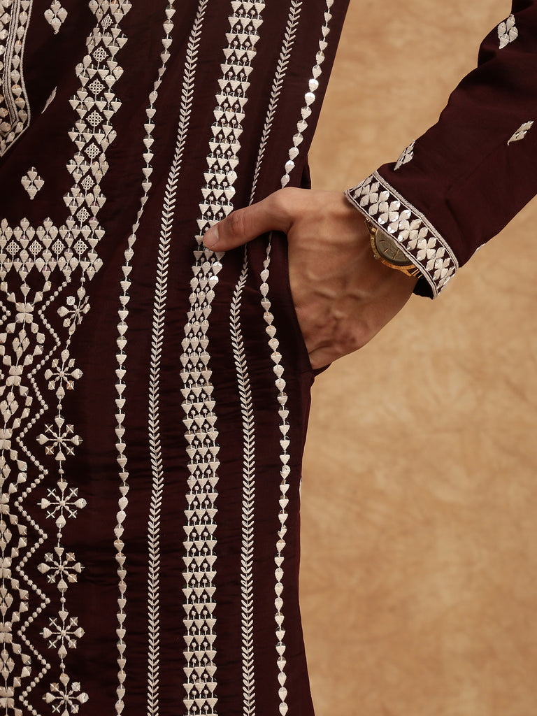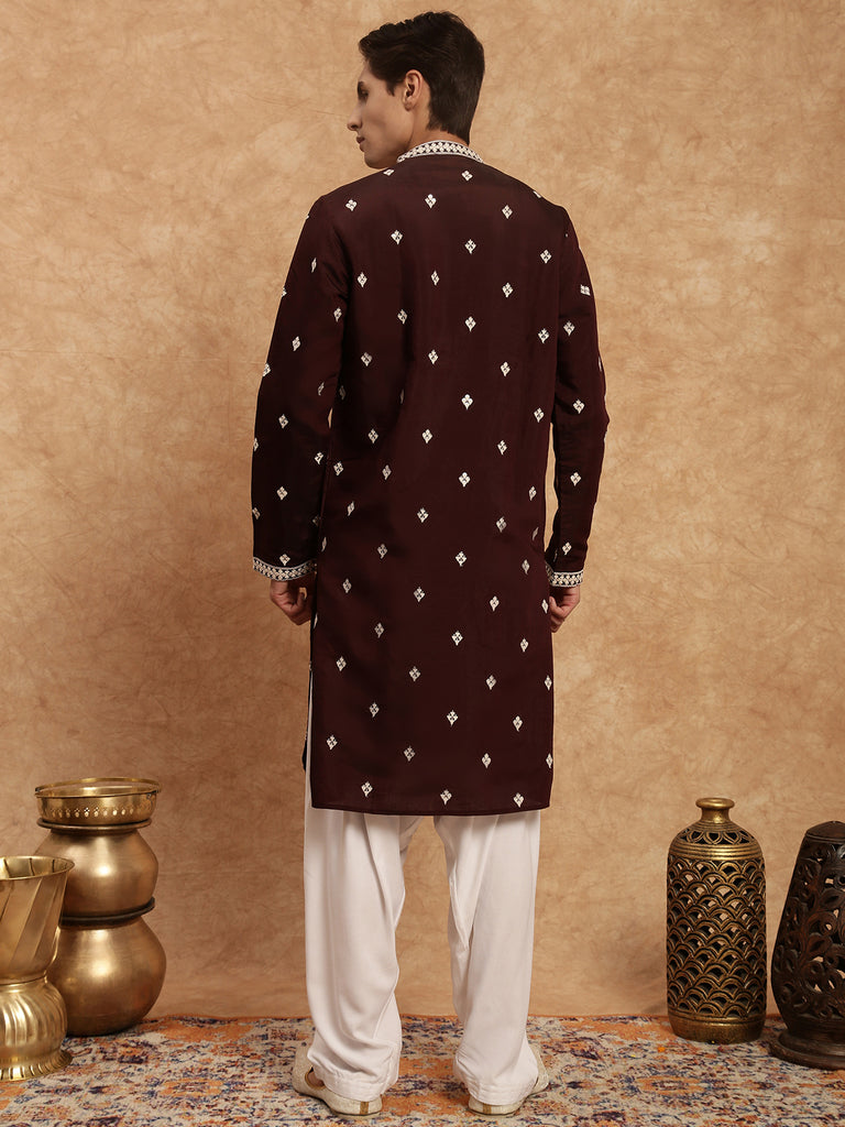 Sanwara Maroon Elegance Men's Chikankari Work Kurta