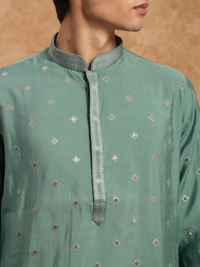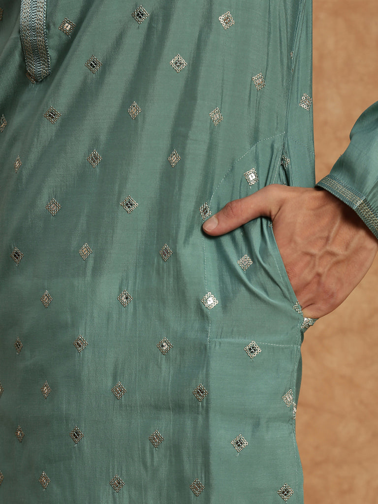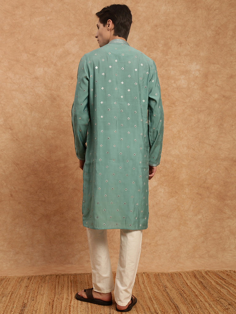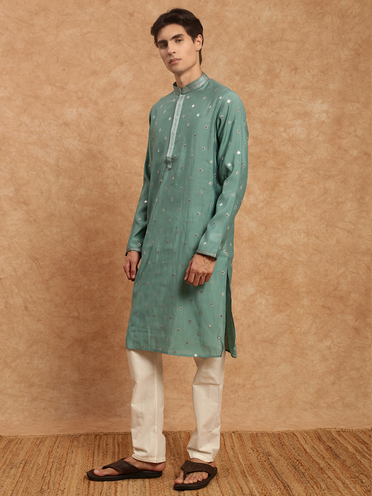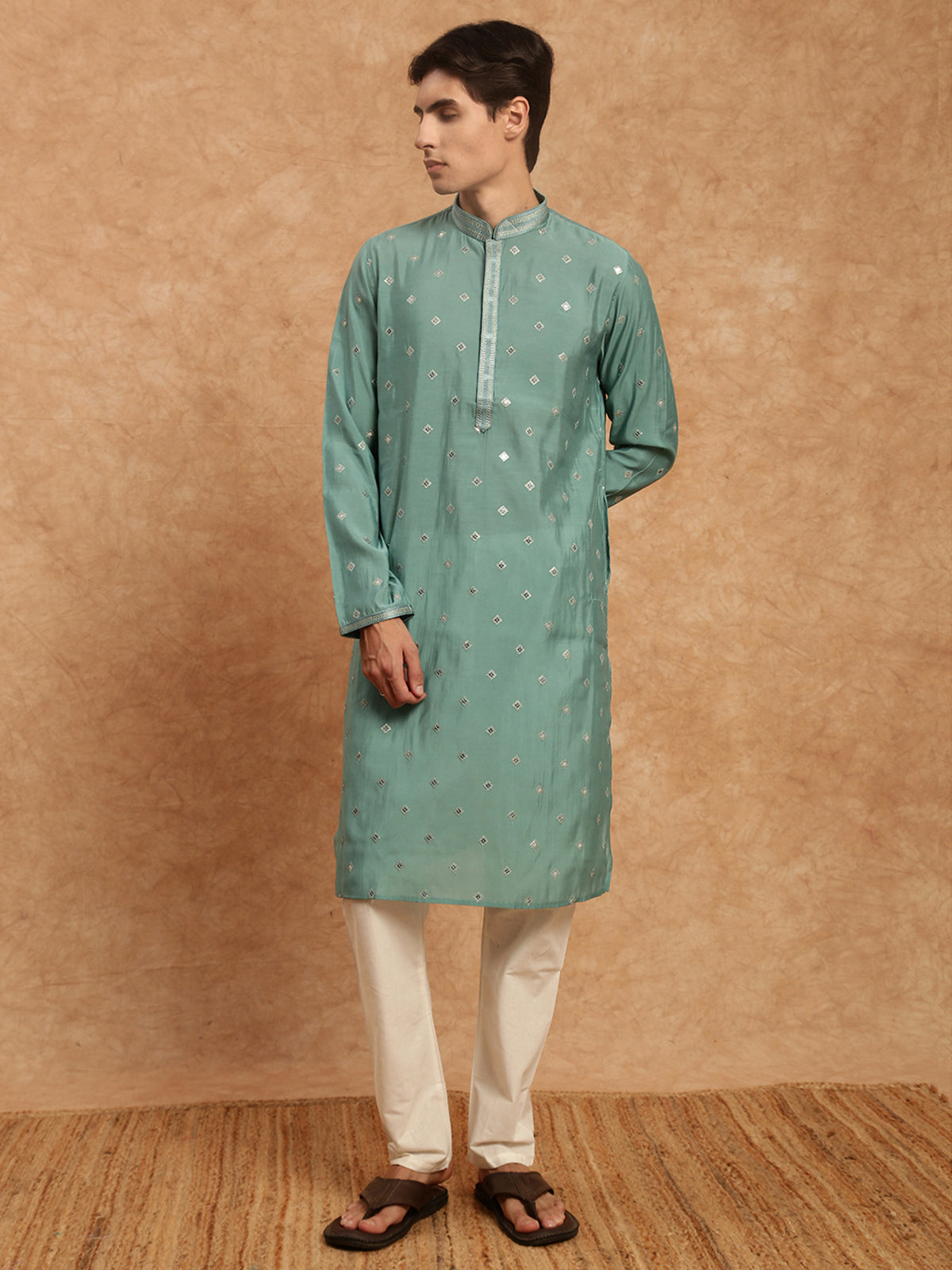 Sanwara Sky Blue Solid Silk Elegance Men's Kurta