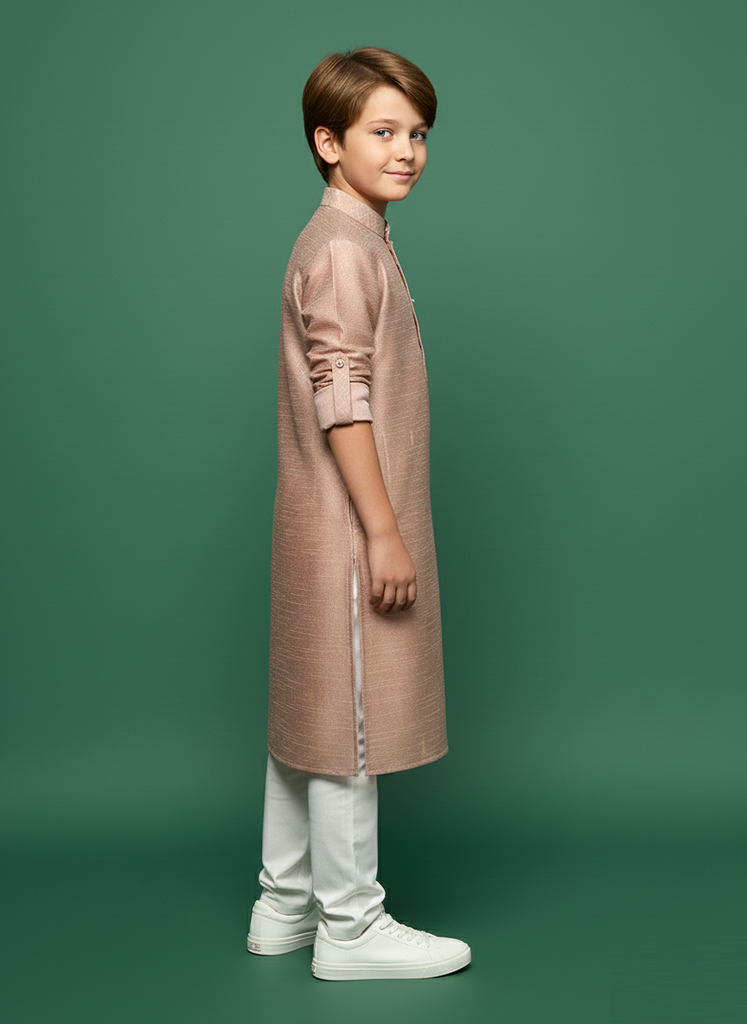 Let your child step out in timeless elegance with Sanwara’s Kurta Set a flawless blend of traditional artistry and modern style. Where cultural heritage meets today’s trends, giving your little one a confident and charming way to celebrate every occasion.