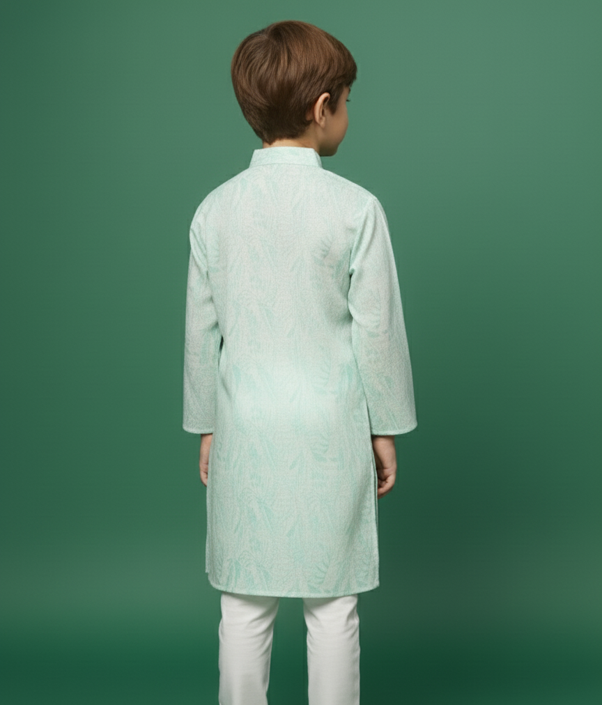 Sanwara Premium Cotton Green Printed Kurta for Boys