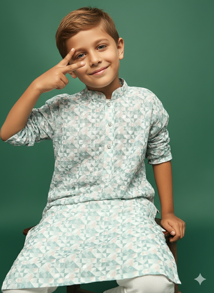 Let your child step out in timeless elegance with Sanwara’s Kurta Set a flawless blend of traditional artistry and modern style. Where cultural heritage meets today’s trends, giving your little one a confident and charming way to celebrate every occasion.