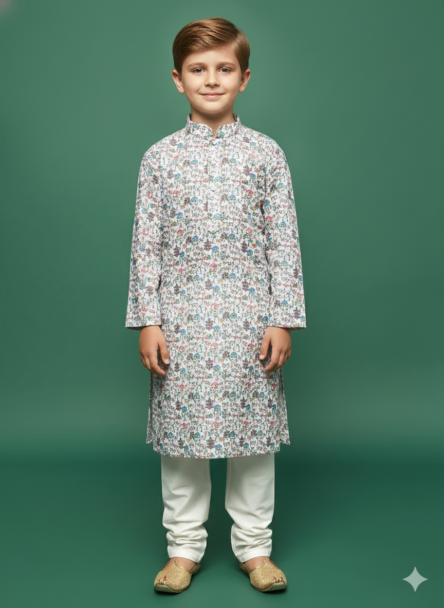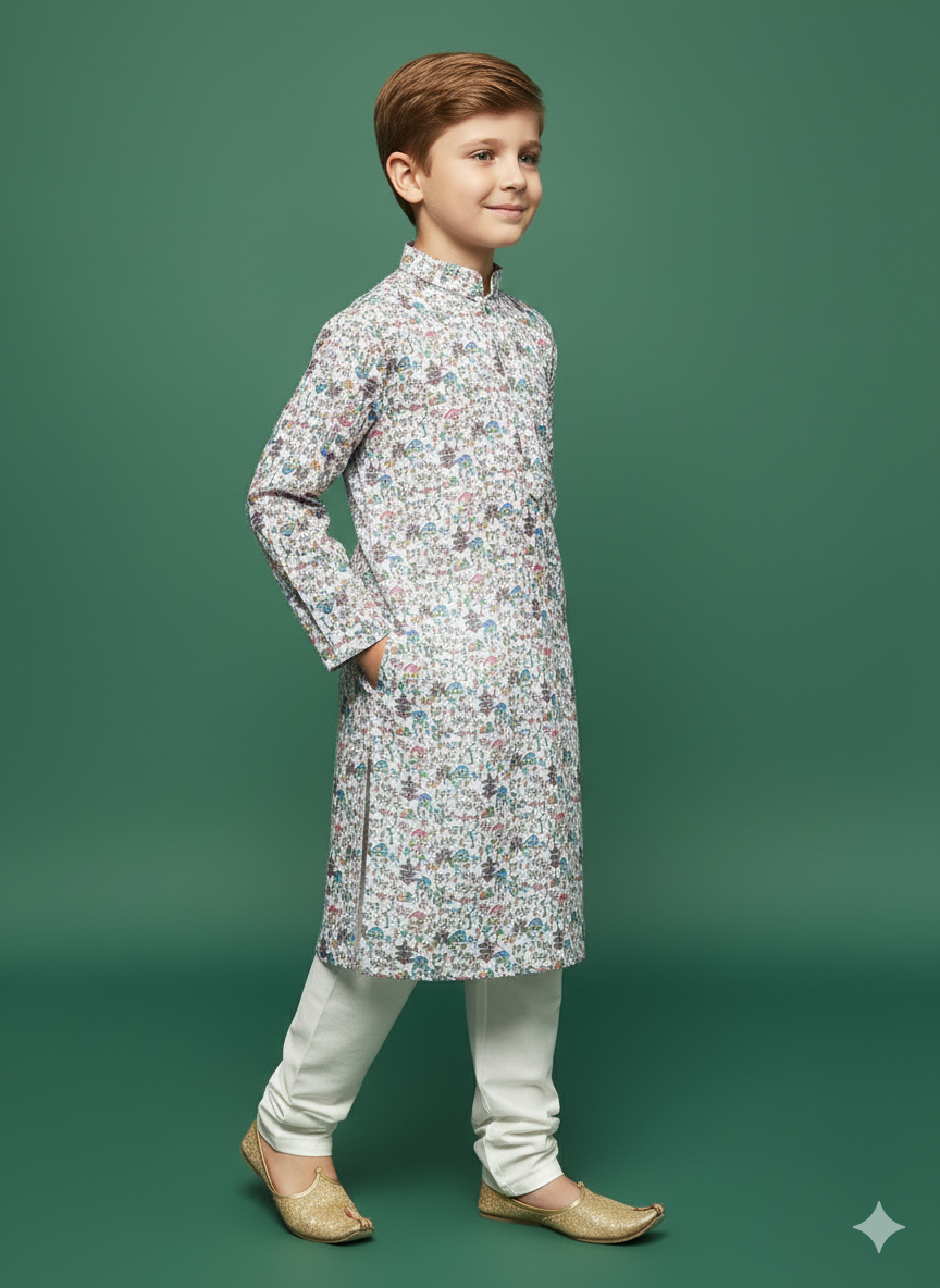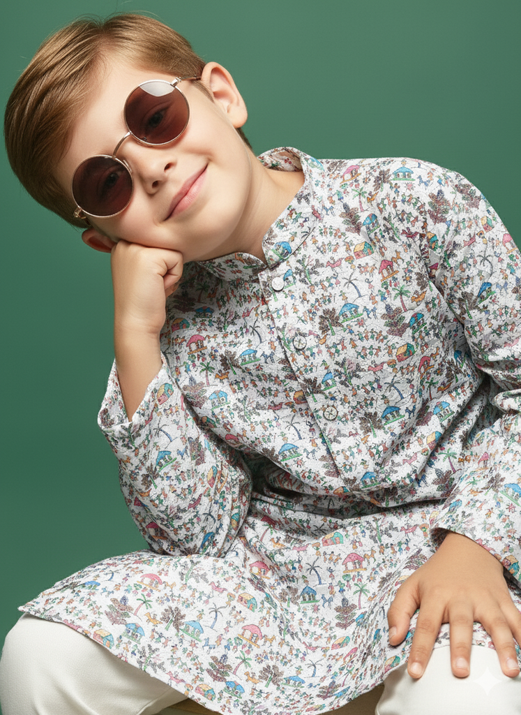 Let your child step out in timeless elegance with Sanwara’s Kurta Set a flawless blend of traditional artistry and modern style. Where cultural heritage meets today’s trends, giving your little one a confident and charming way to celebrate every occasion.