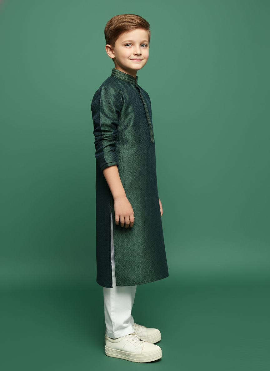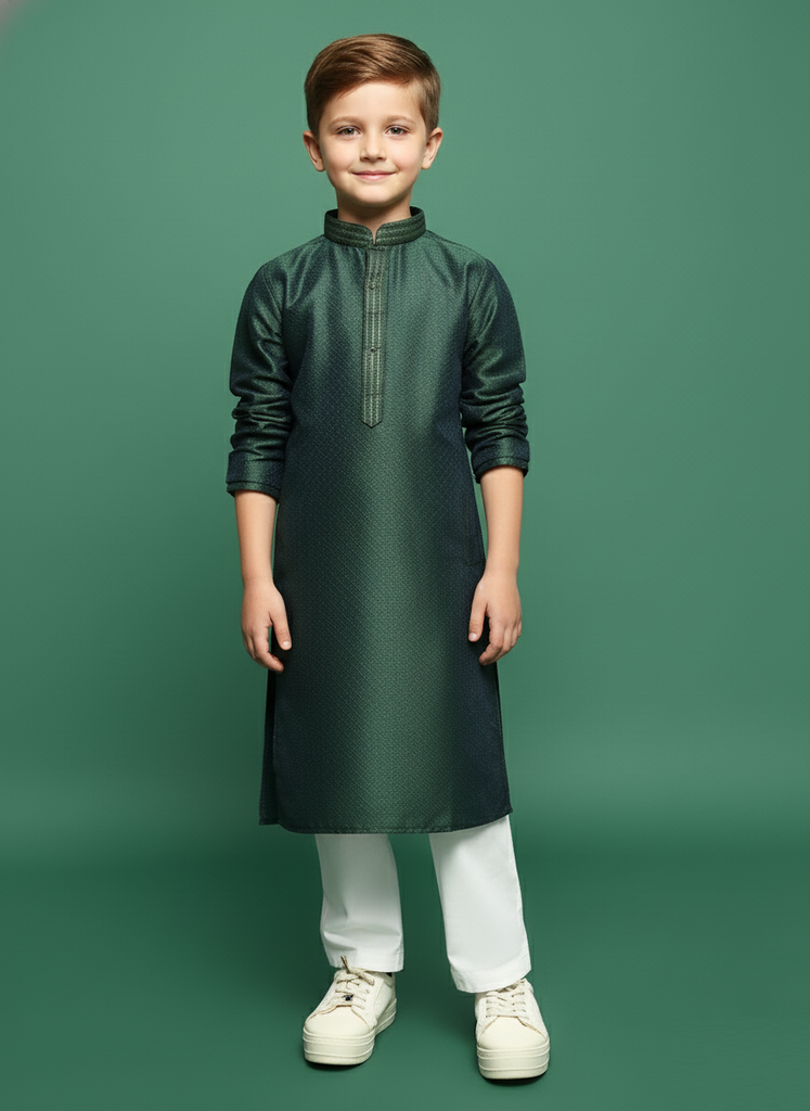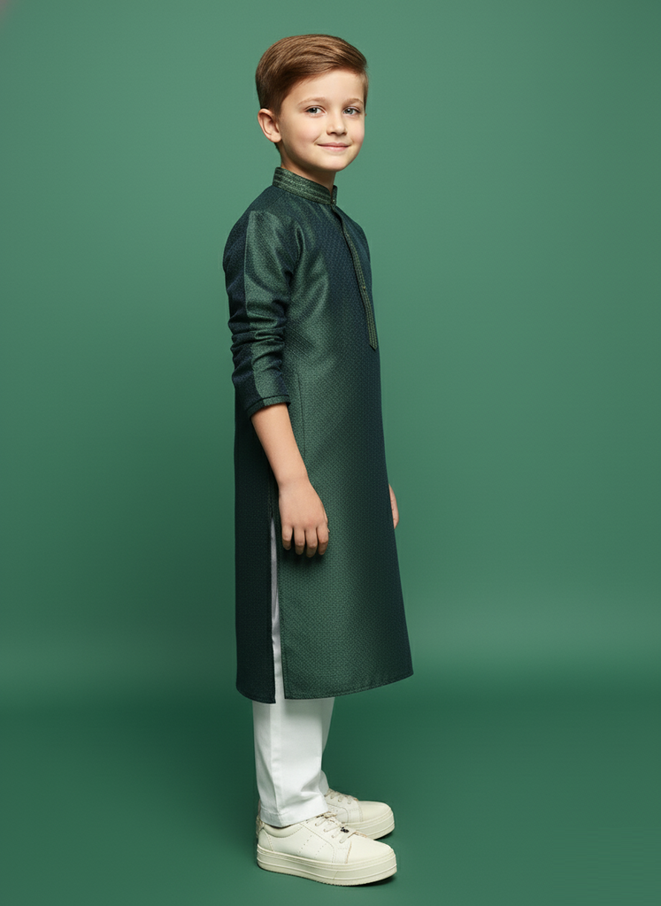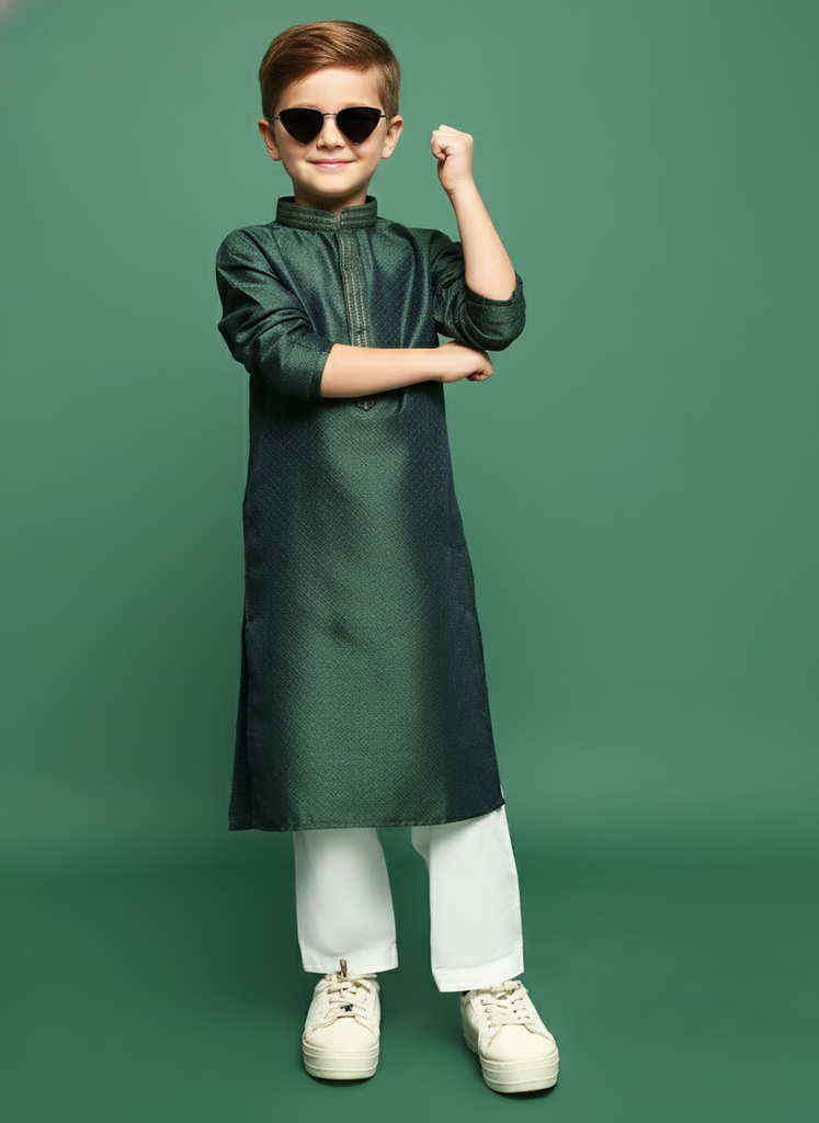 Sanwara Deep Green Kurta Set for Boys