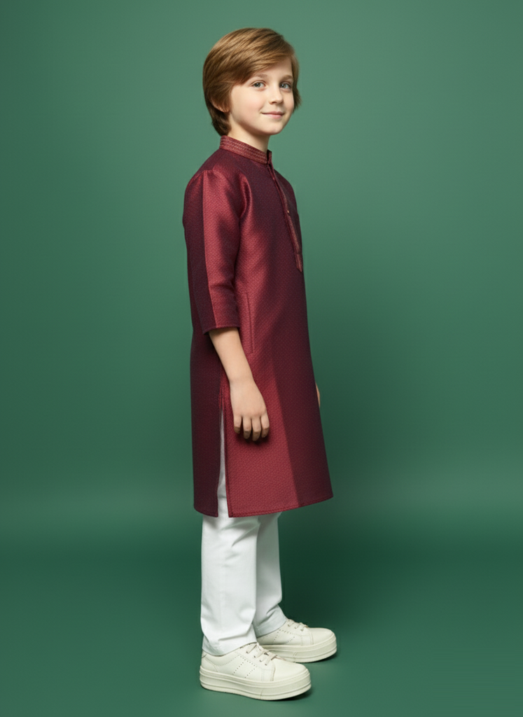 Sanwara Presents Royal Maroon Boys Kurta Set