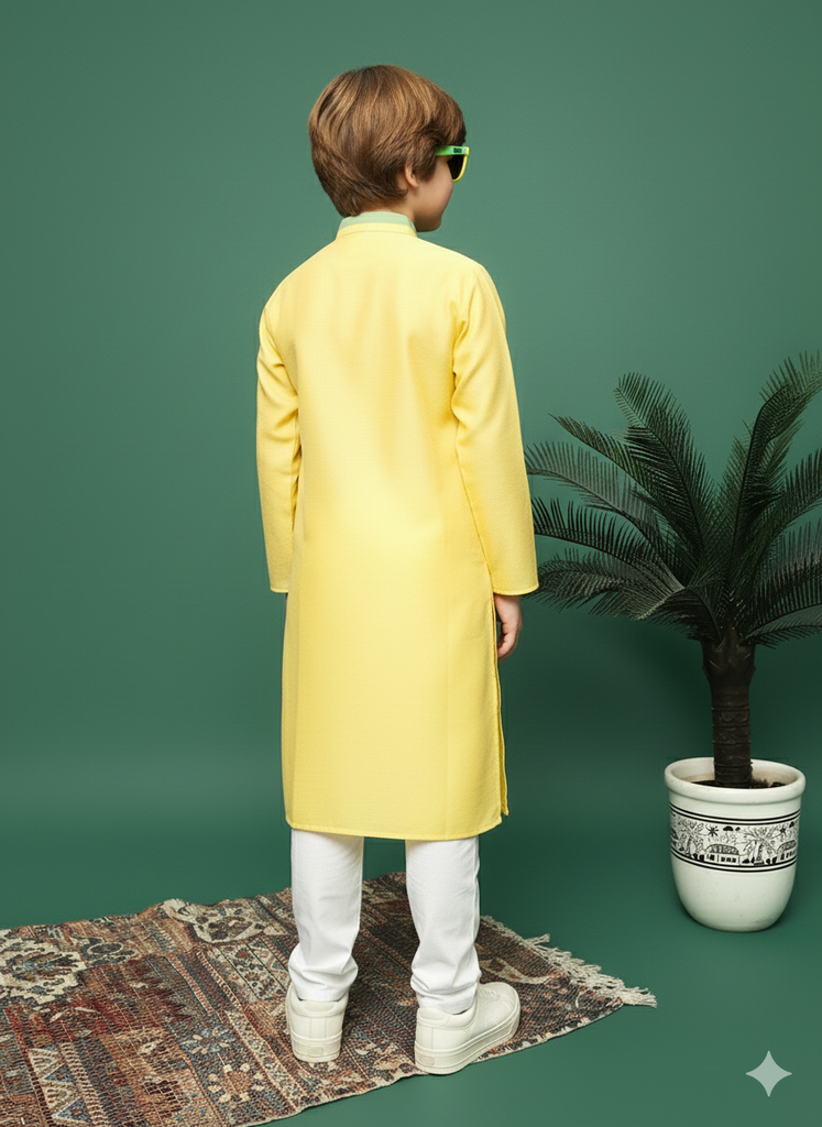Sanwara Silk Blend Yellow Kurta Set for Boys