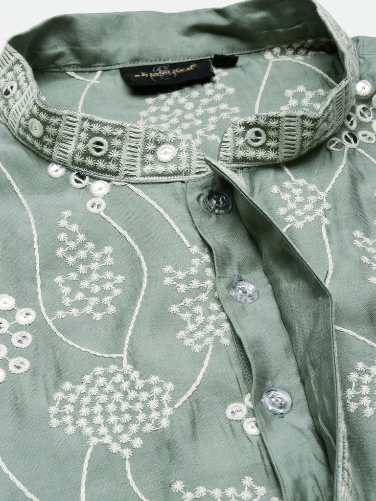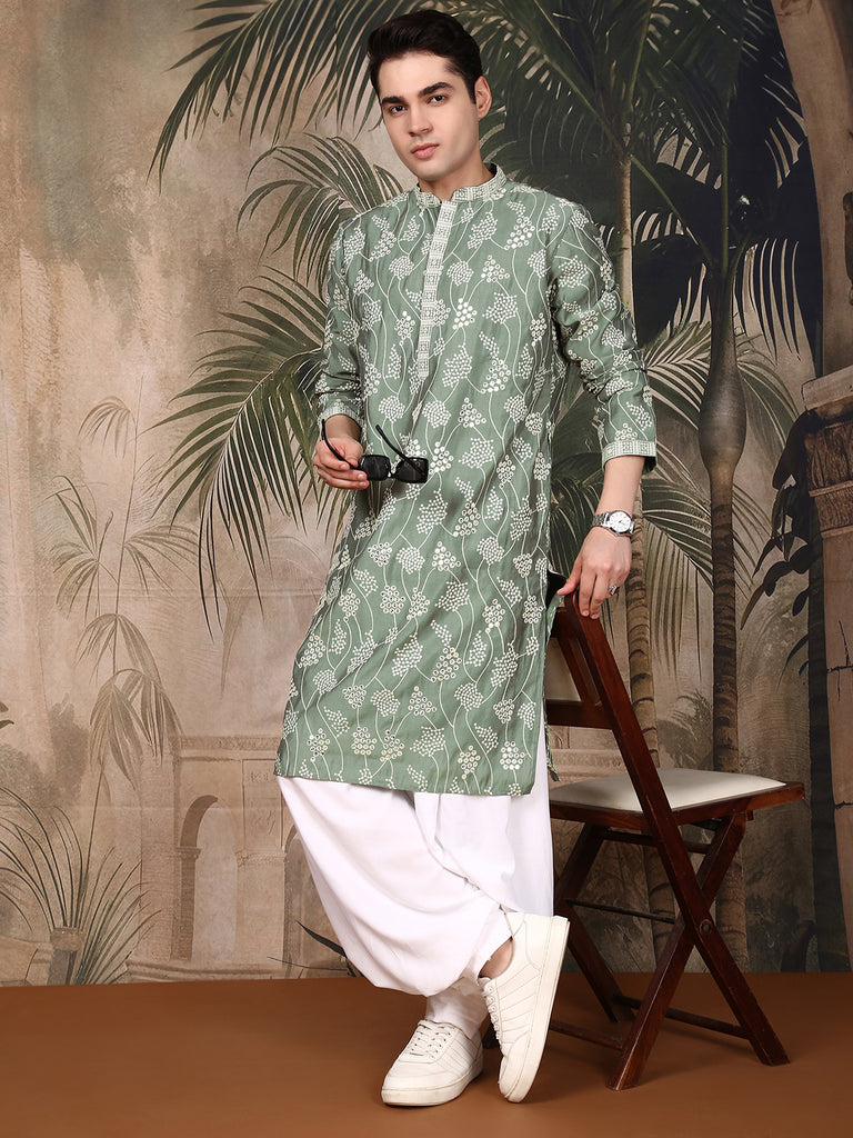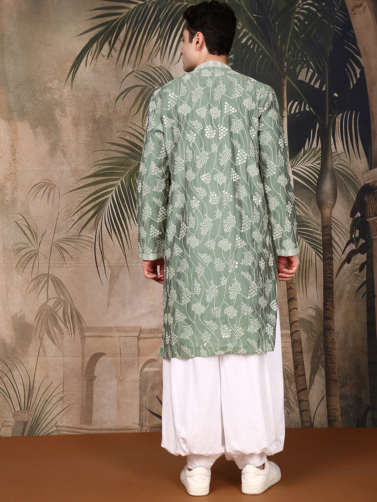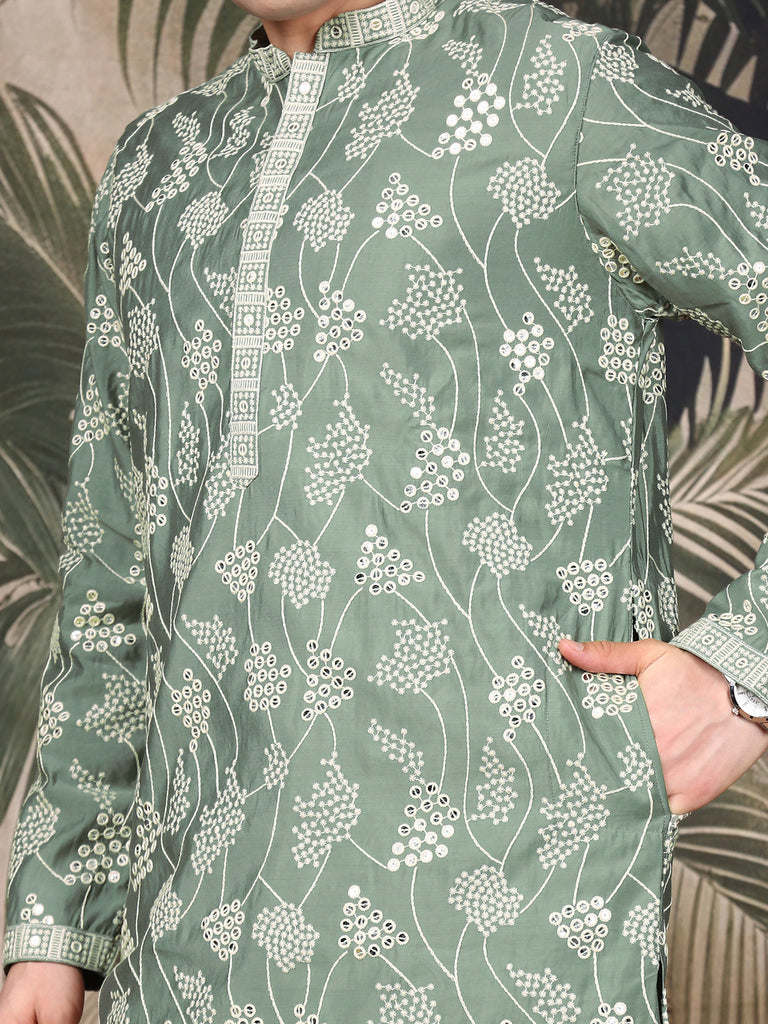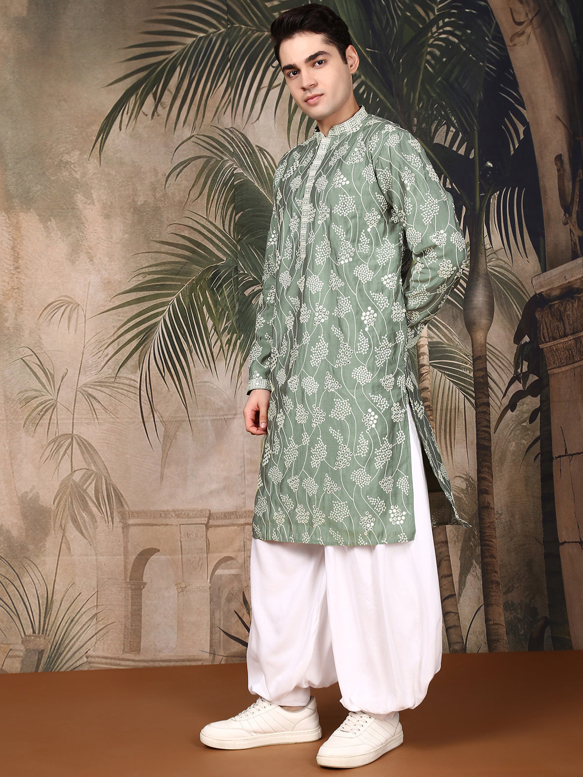 Sanwara Classic Green Kurta Set for Men with Minimalist Embroideryand Finest Sequins work,Ideal for Diwali, Navratri & Ethnic Wedding Wear