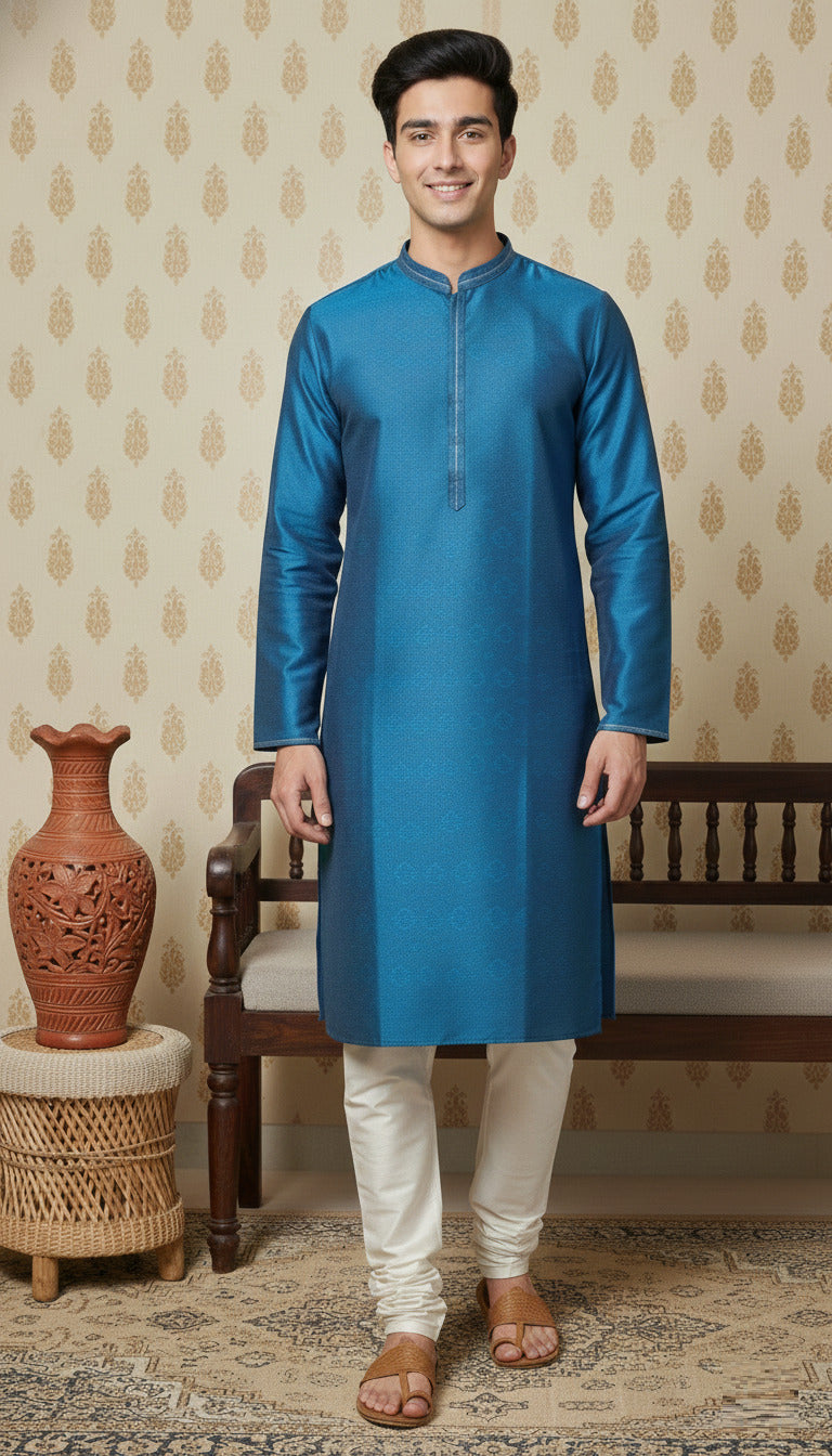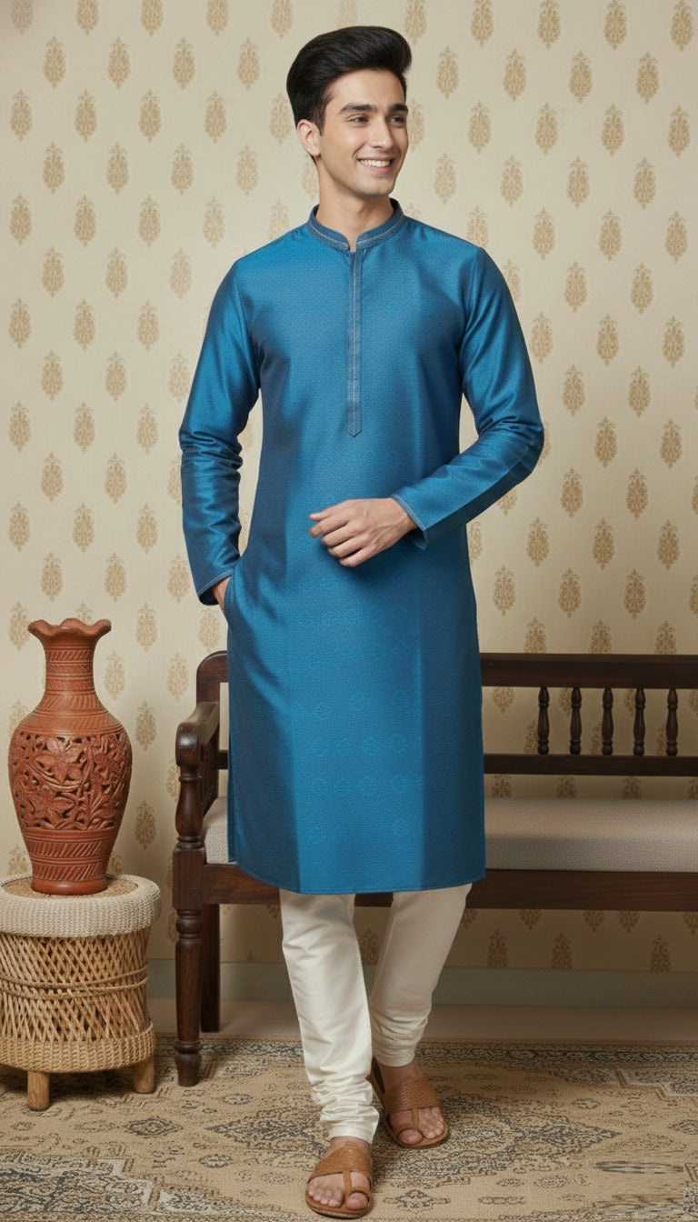 Sanwara Men’s PremiumFirozi Coloured Kurta Set with Authentic Embroidery Heritage Crafted for Modern Style