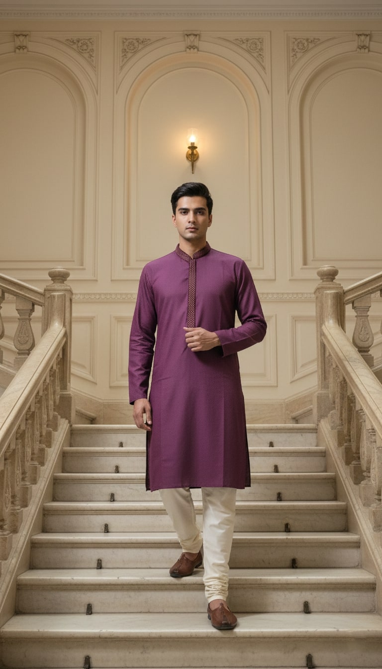 Sanwara Solid Purple Colored Mens Kurta Set with Embroidery Style