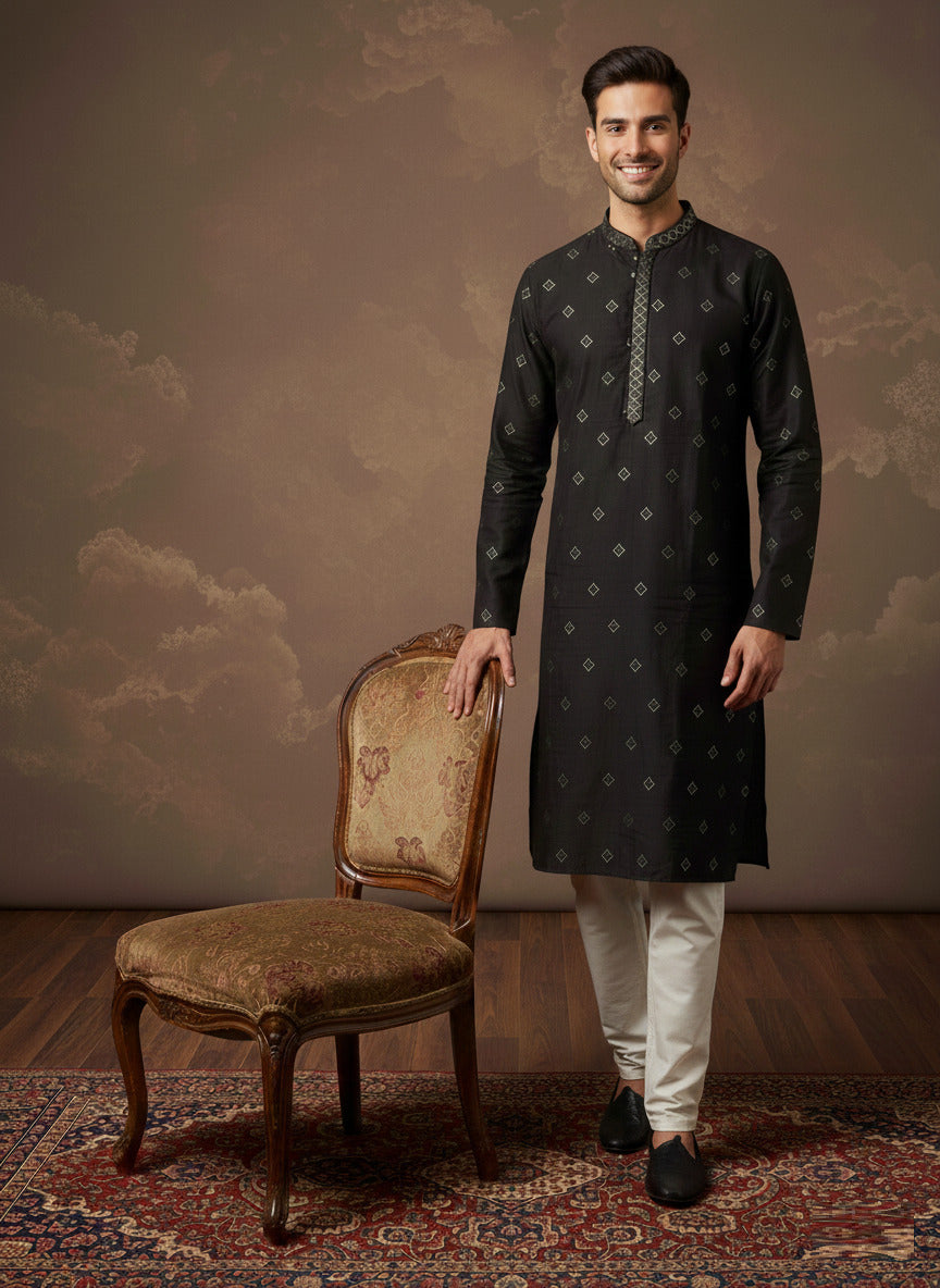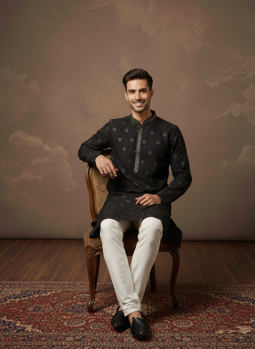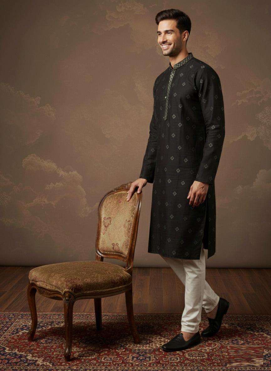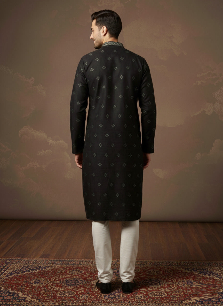 Sanwara Designer Black Silk-Blend Kurta Set with Intricate Embellishment