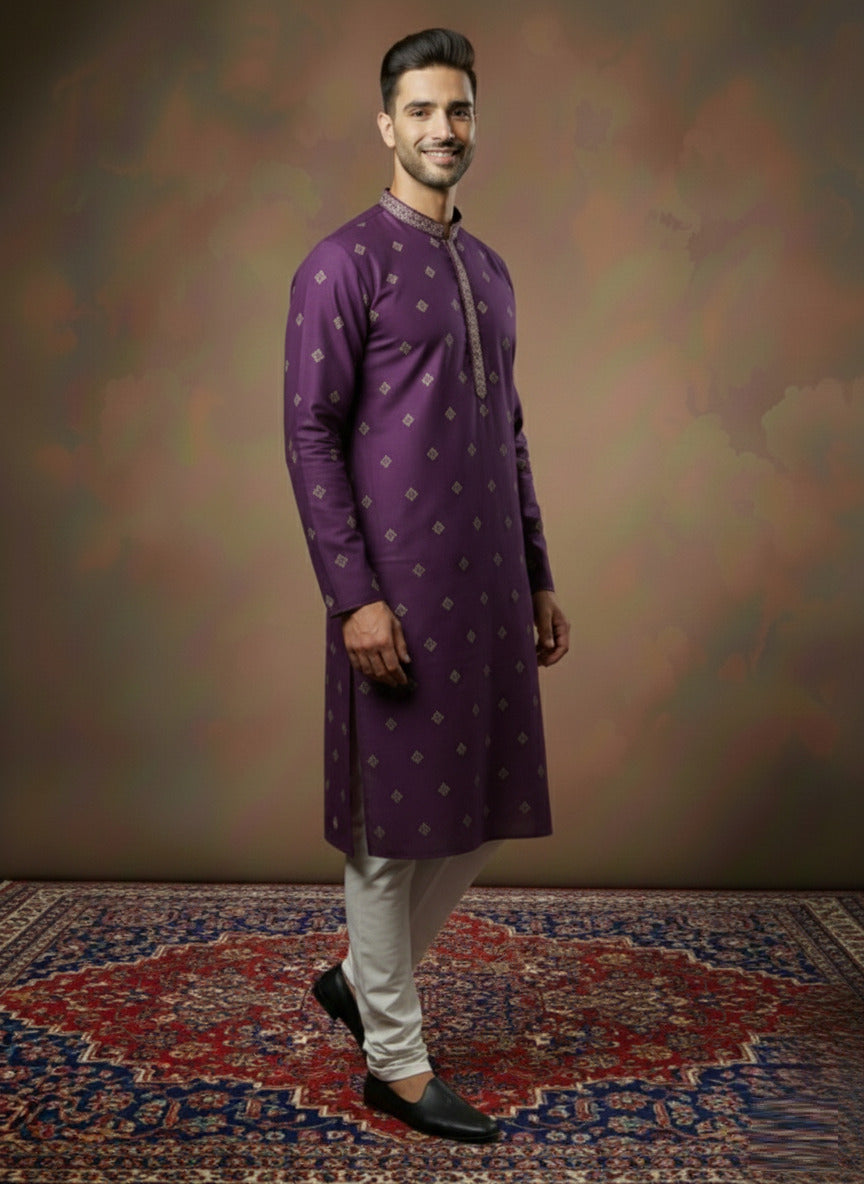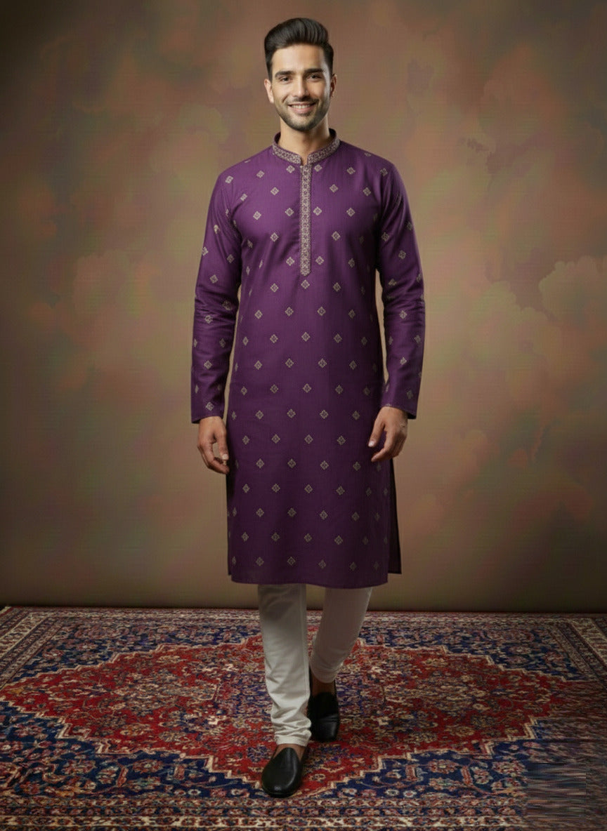 Sanwara Premium Silk-Blend Purple Kurta Set with Embroidery and Sequin Accents