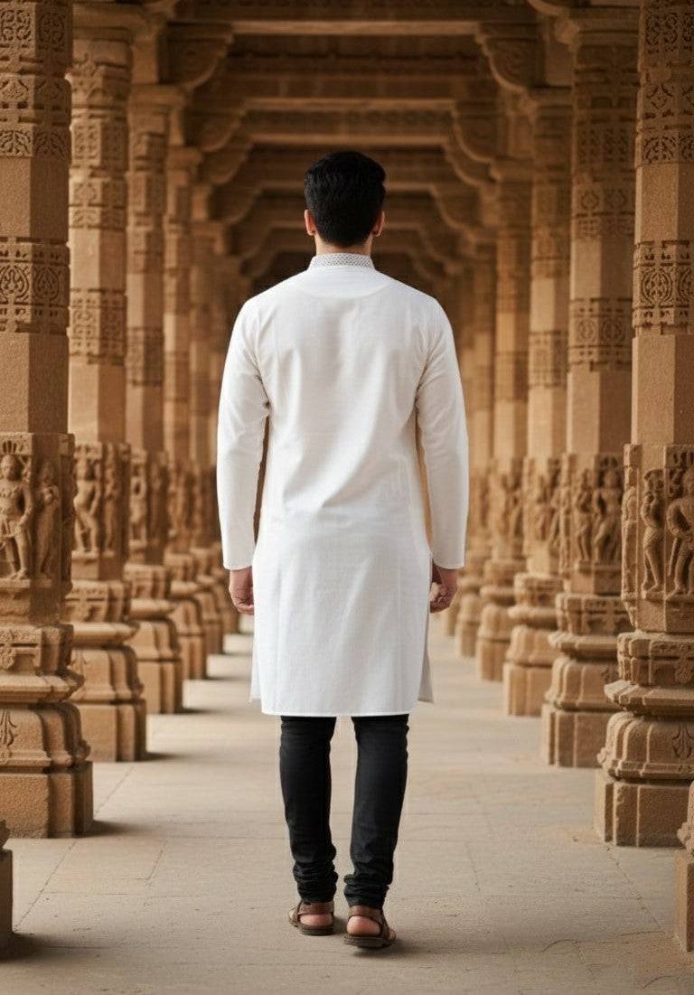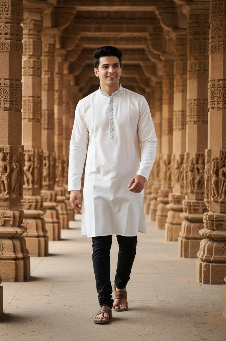 Sanwara Men’s Cotton Kurta Set Featuring with Abstract Embroided for Elegant Style