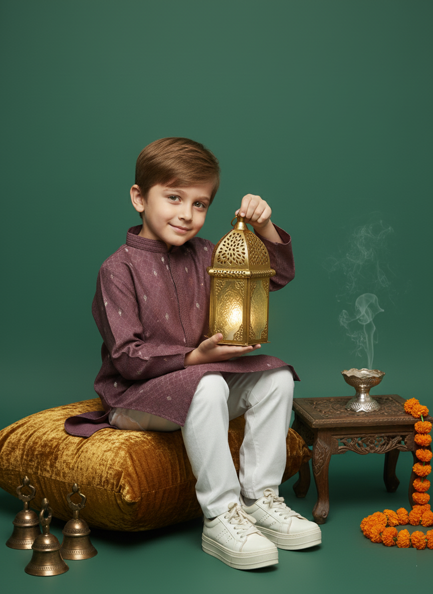 Let your child step out in timeless elegance with Sanwara’s Kurta Set a flawless blend of traditional artistry and modern style. Where cultural heritage meets today’s trends, giving your little one a confident and charming way to celebrate every occasion.