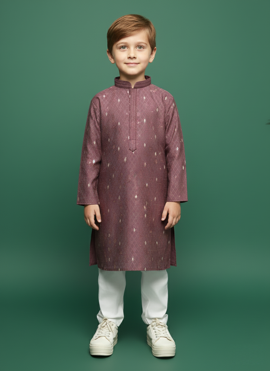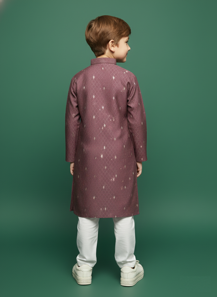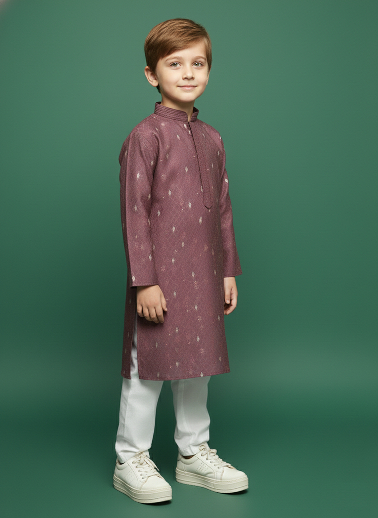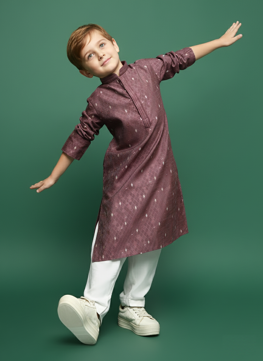Sanwara Rich Wine Silk Boys Kurta Set