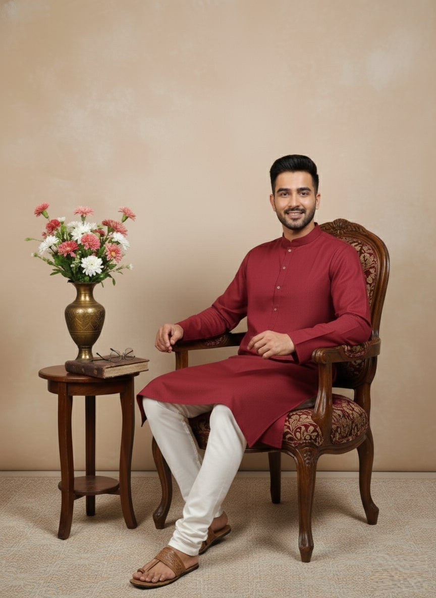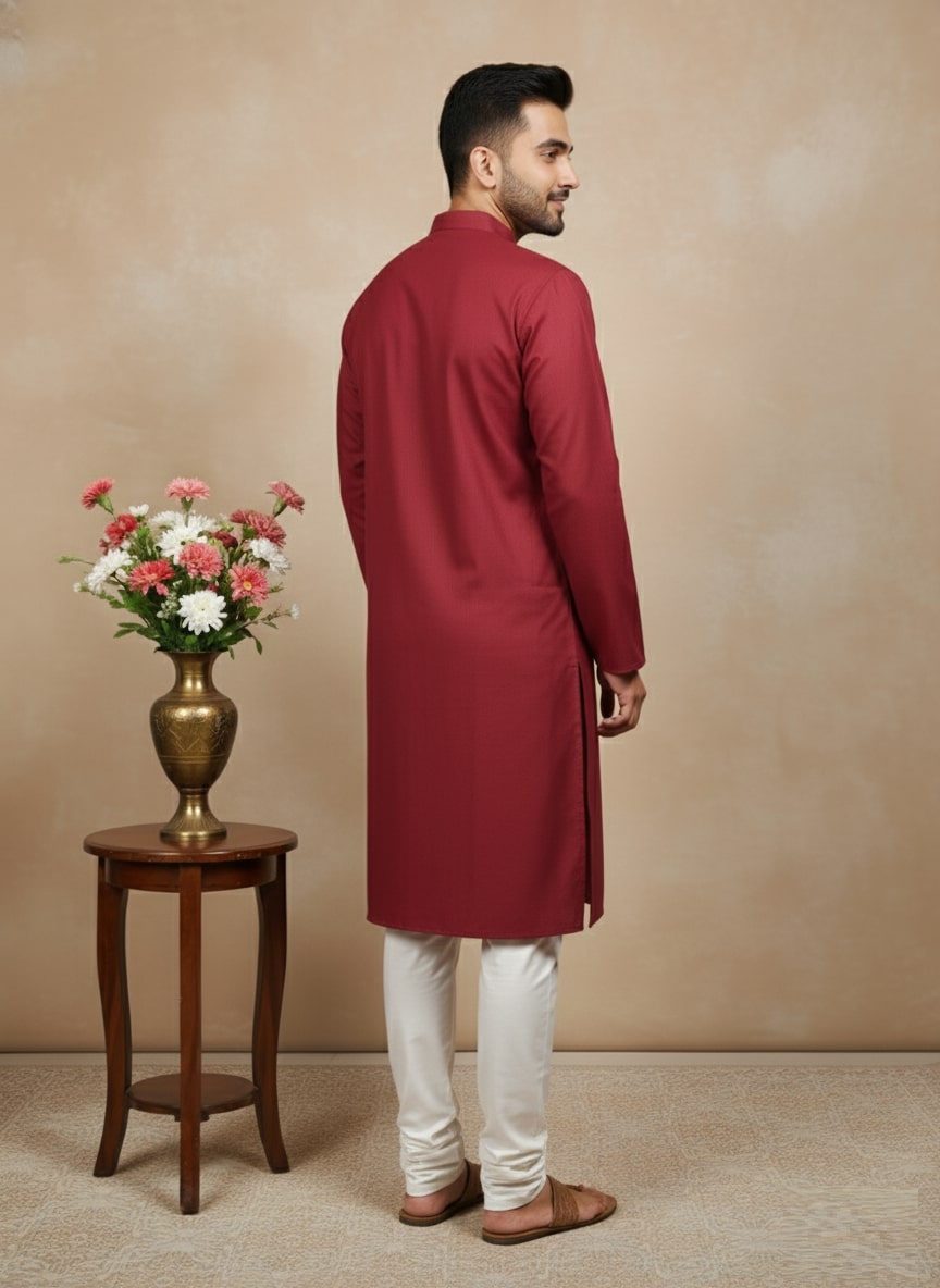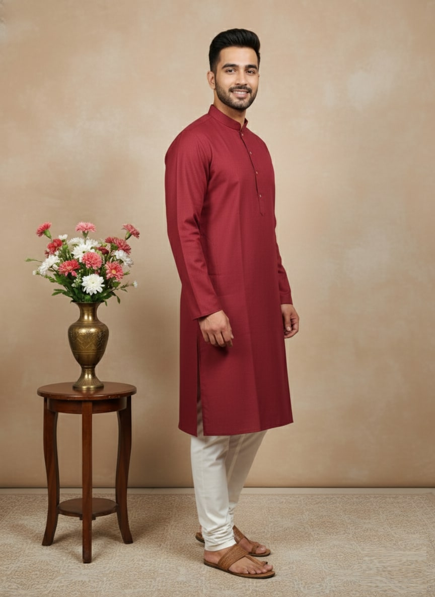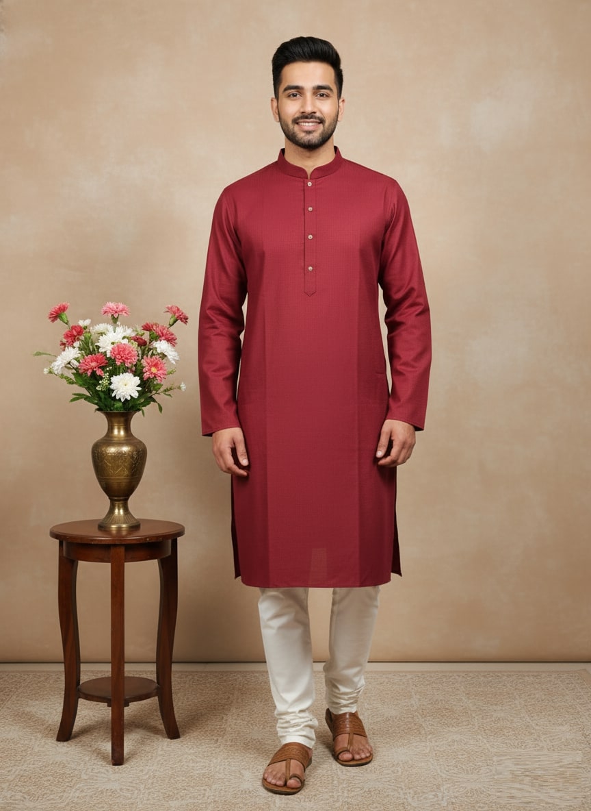 Sanwara Solid Maroon Textured Cotton Kurta