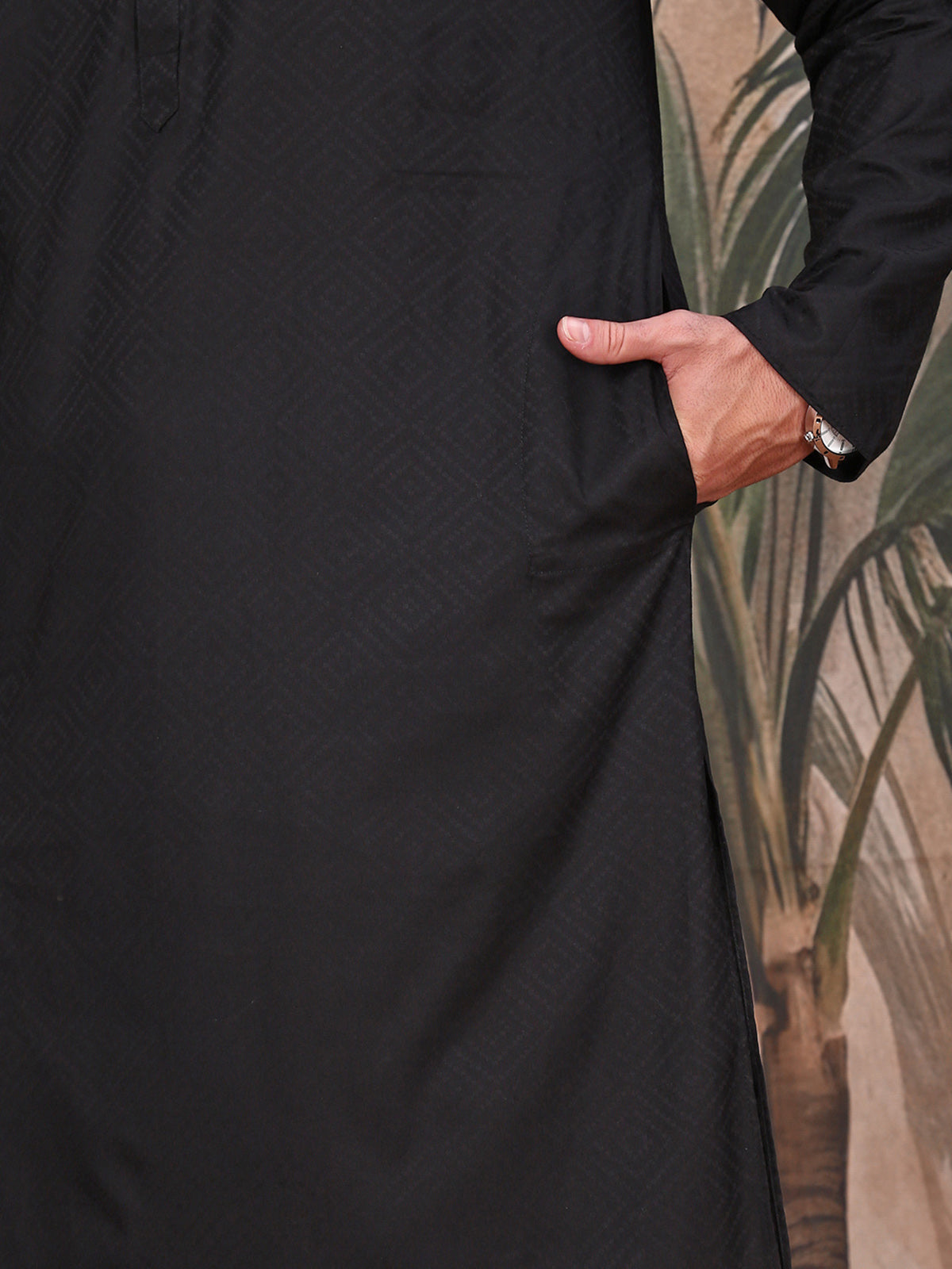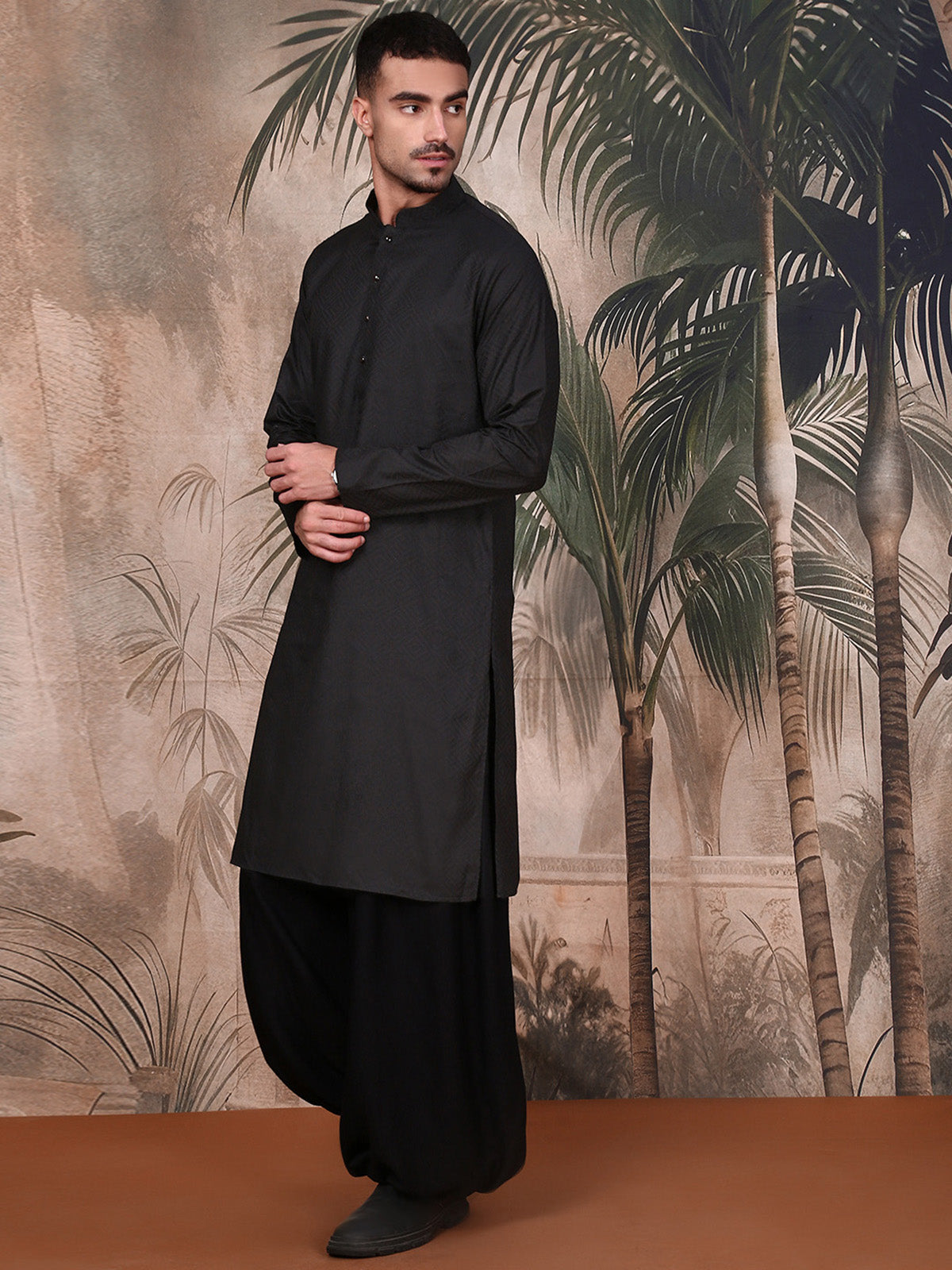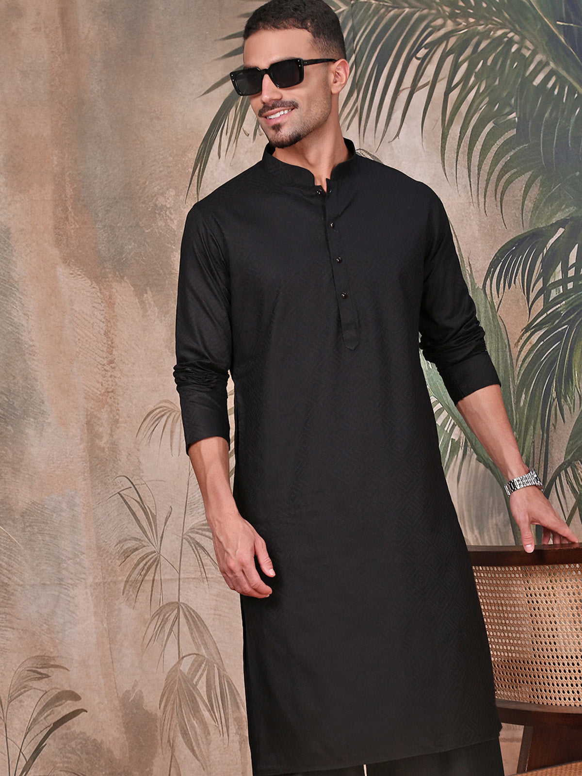 The Kurta Set is expertly crafted from luxurious, high-quality fabric, offering a refined yet stylish fit that adds depth and distinction to your look. A sleek mandarin collar elevates its ethnic charm with a regal flair. The straight hem and side slits enhance fluid movement while shaping a contemporary silhouette. Strategically placed pockets blend functionality with effortless sophistication.
