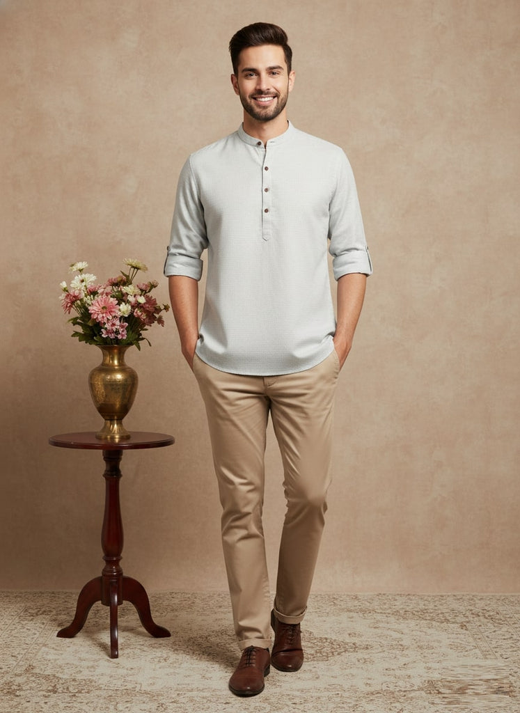 Sanwara Solid Textured Grey Cotton Short Kurta