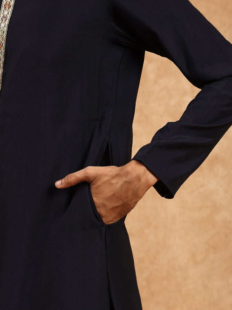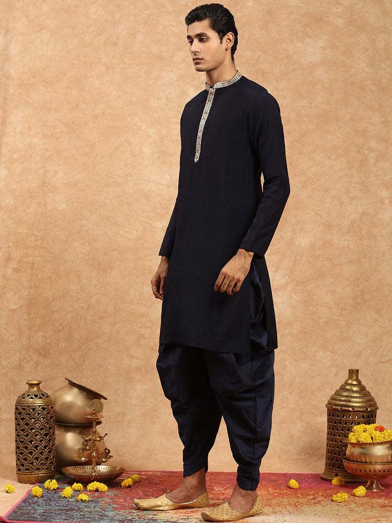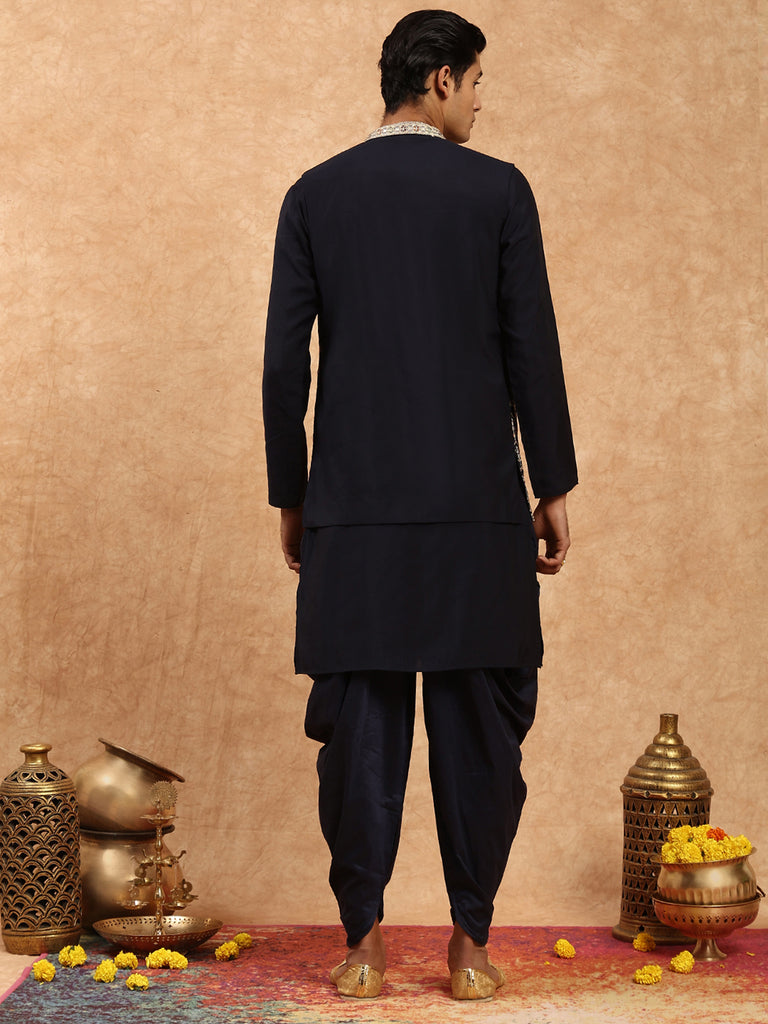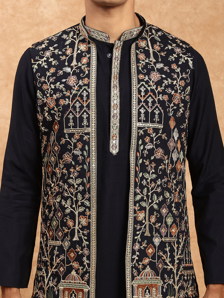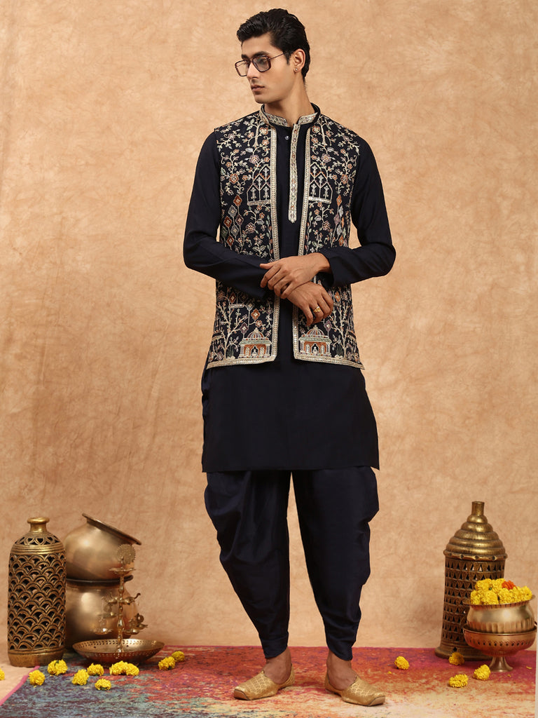 Sanwara Men's DeepBlue Kurta with Floral Jacket Set & Pant A perfect blend of tradition for wedding