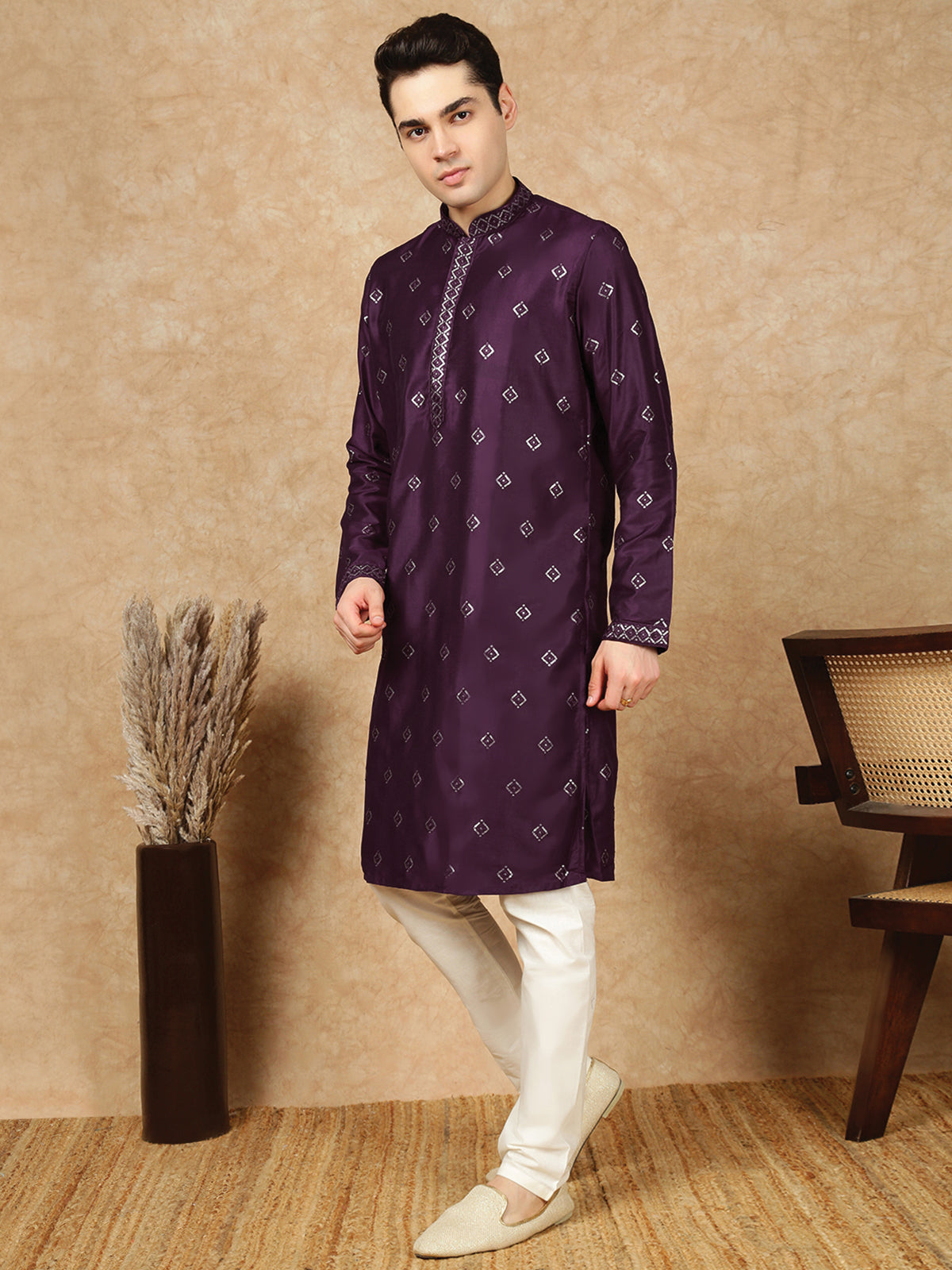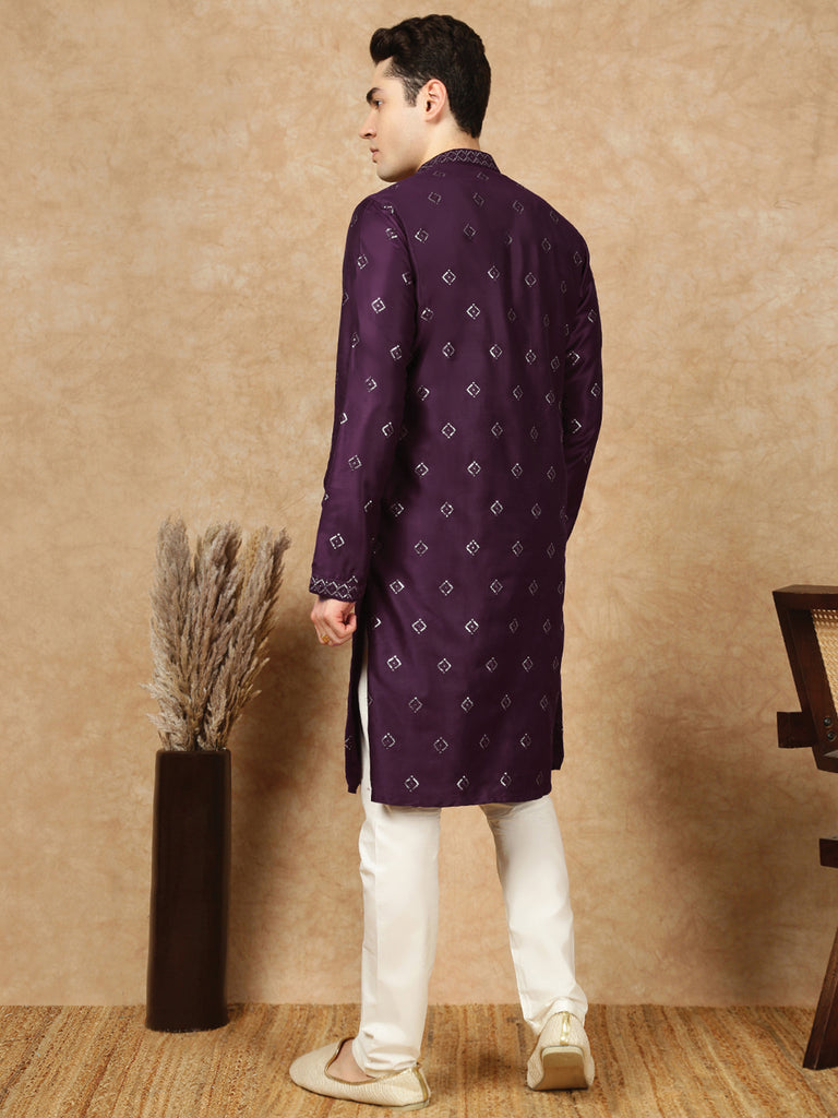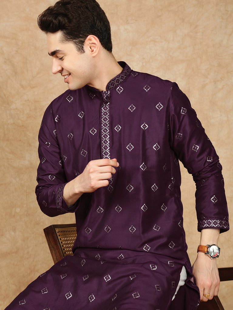 Sanwara Lavish Purple Silk Blend Sequins Work Kurta Set for Men|A Fusion of Contemporary Design, Stylish, Comfortable, and Perfect On Sangeet Celebrations & Cultural Events
