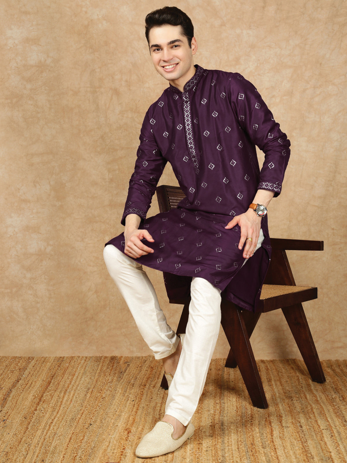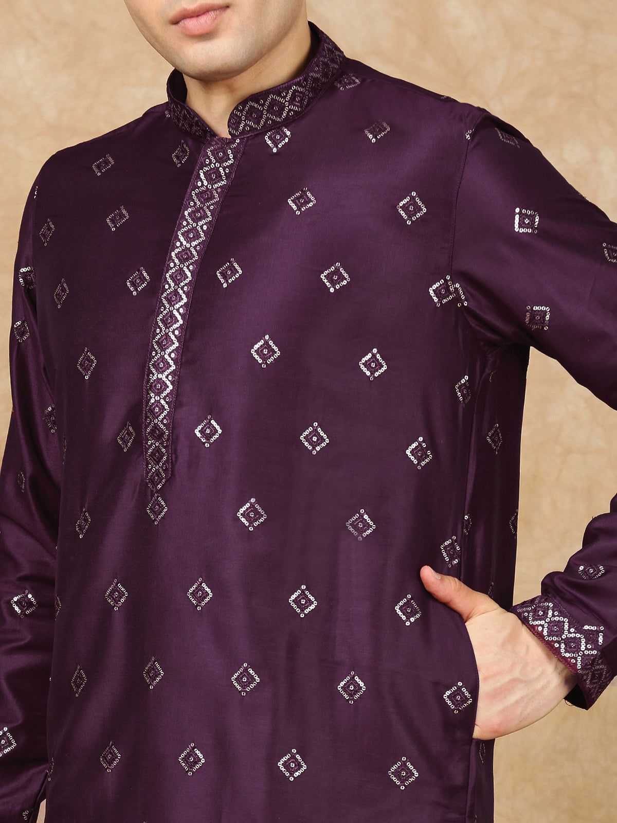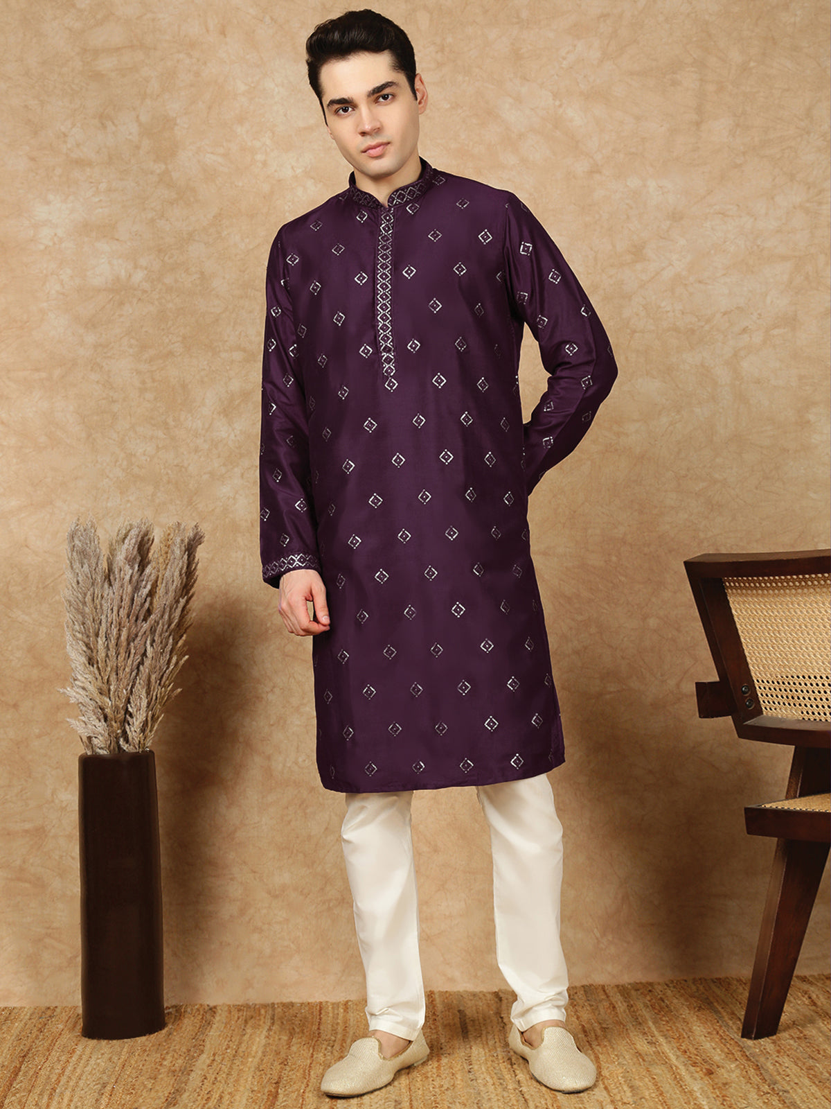 Sanwara Lavish Purple Silk Blend Sequins Work Kurta Set for Men|A Fusion of Contemporary Design, Stylish, Comfortable, and Perfect On Sangeet Celebrations & Cultural Events