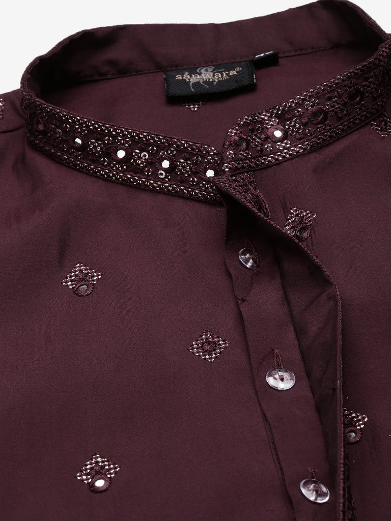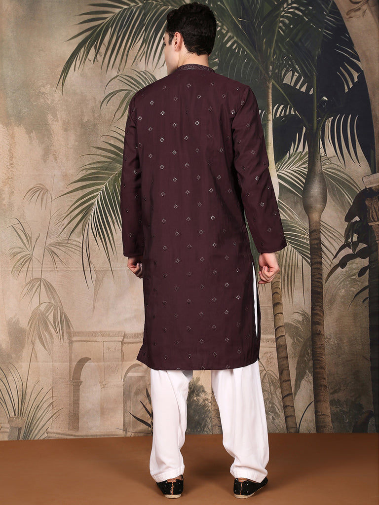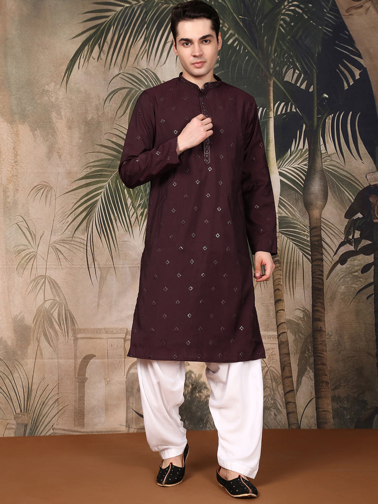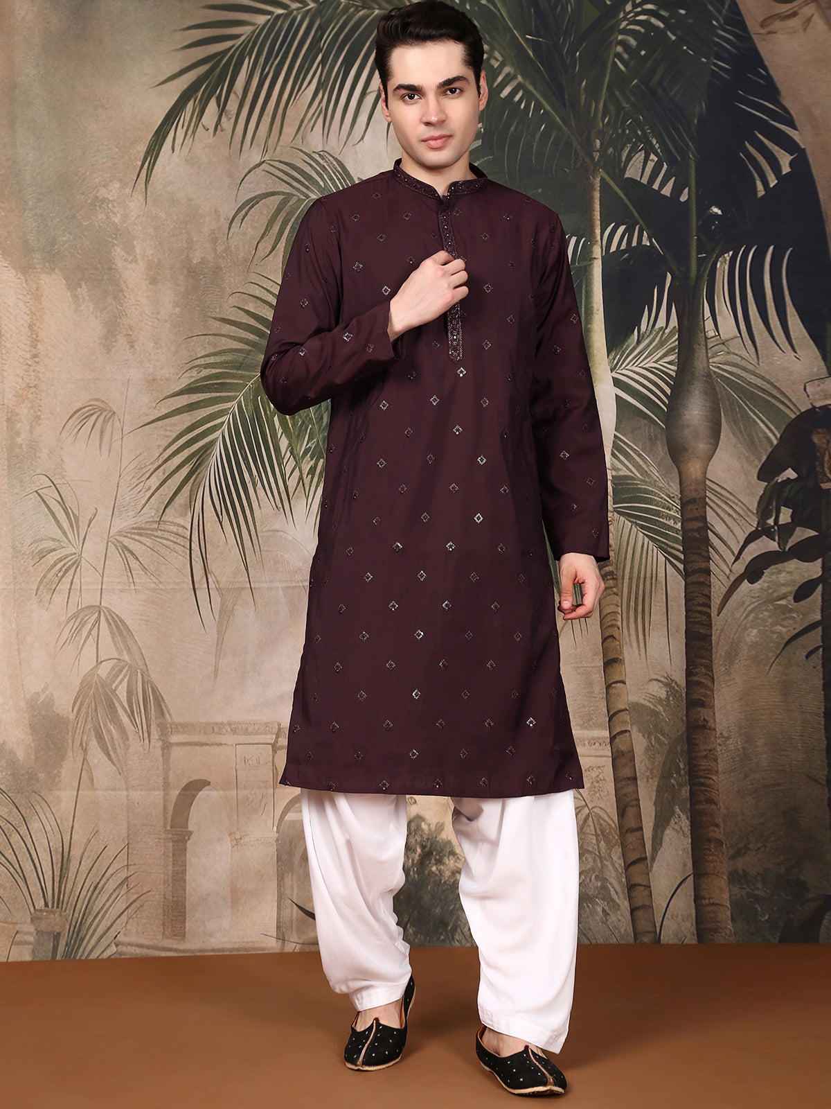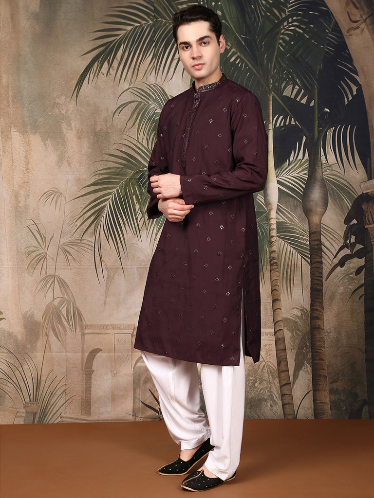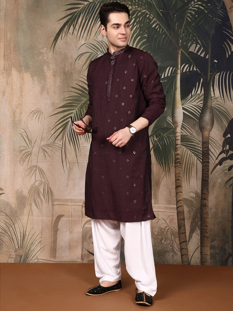 Sanwara Men’s Purple Designer Sequins Work Kurta Set in Rich Silk Blend Featuring Contemporary Flair for Festive Navratri Diwali Occasions
