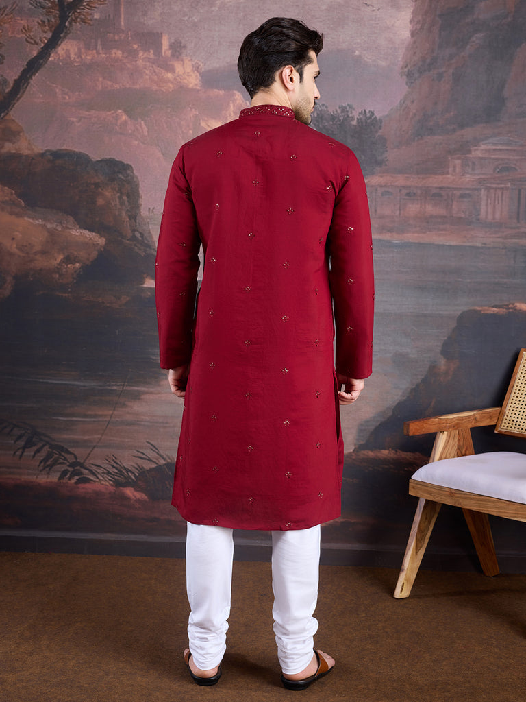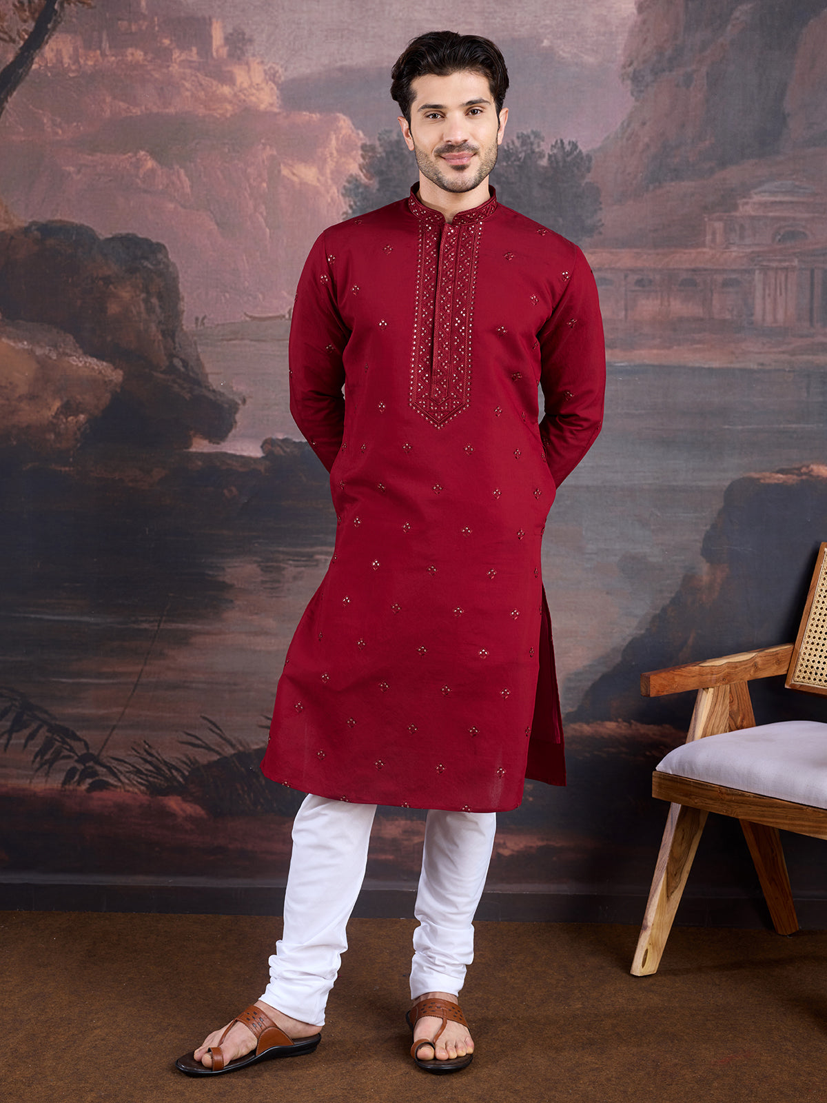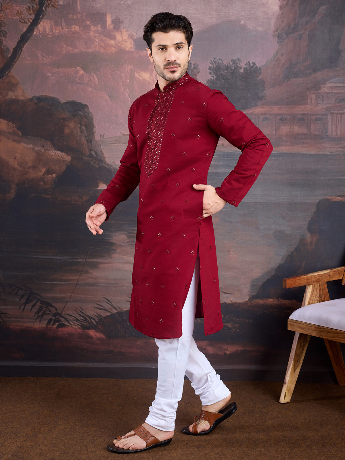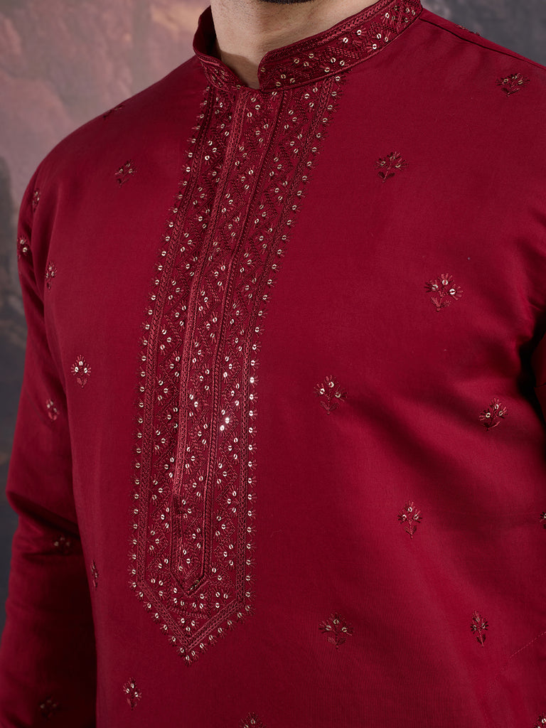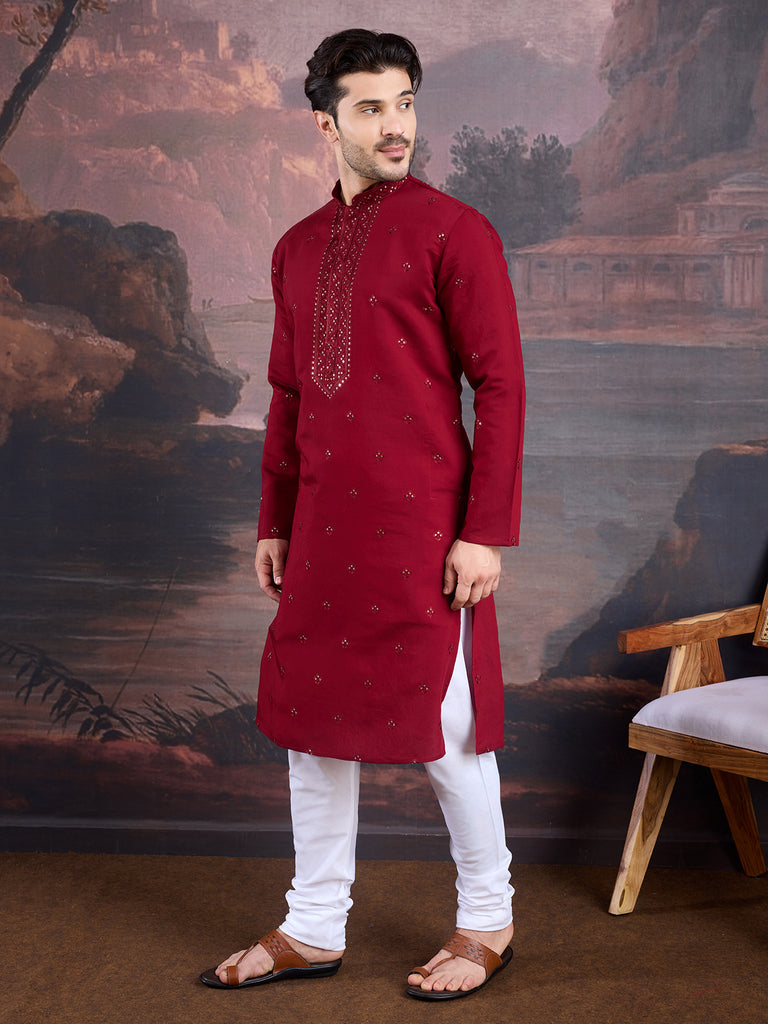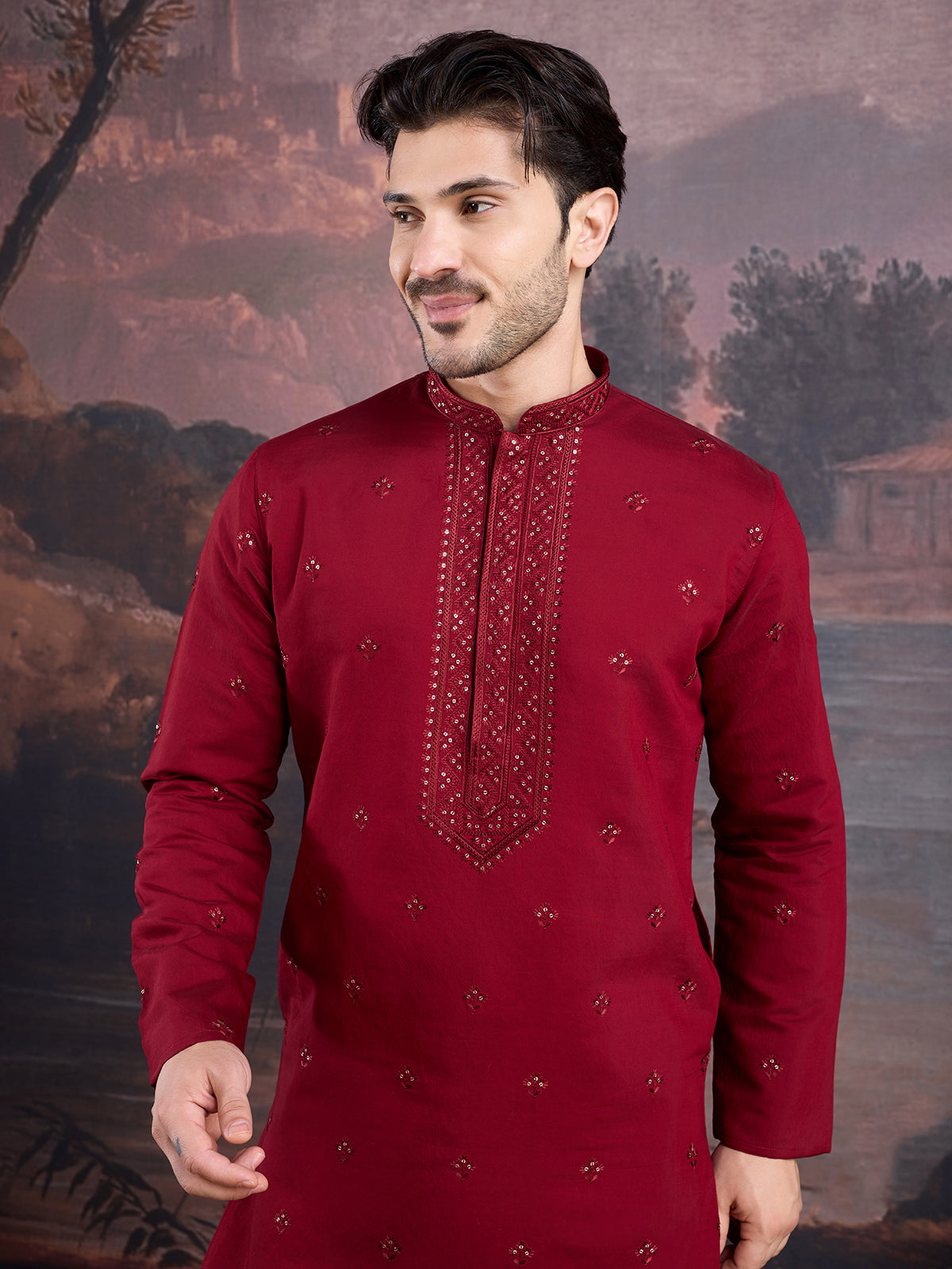 Men's Stylish & Premium Maroon Woven Kurta Set