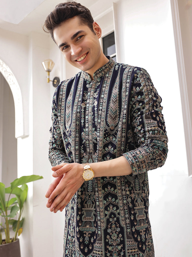Shimmering Men's Black Sequin Exquisite Chikankari Work Kurta