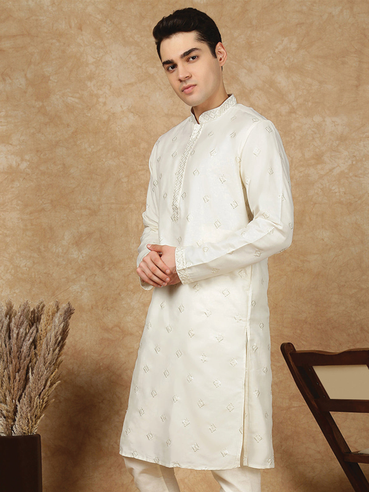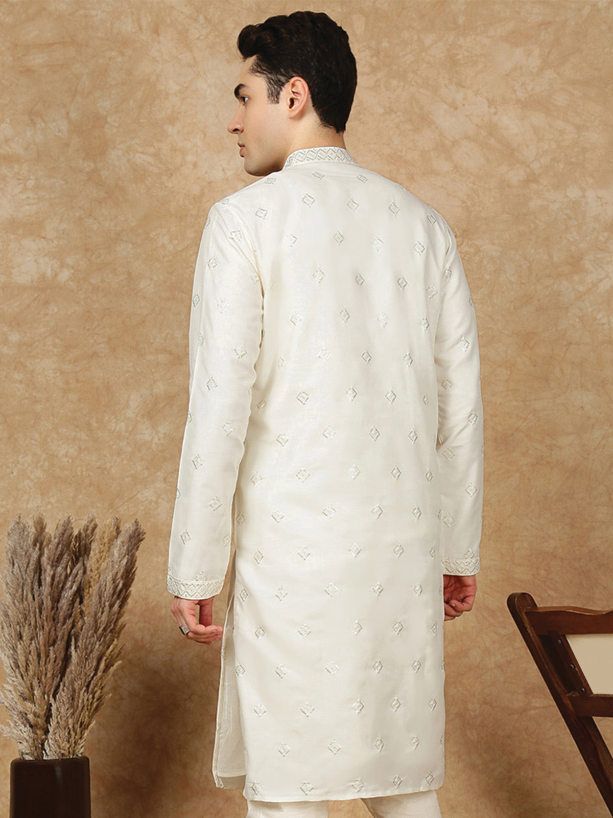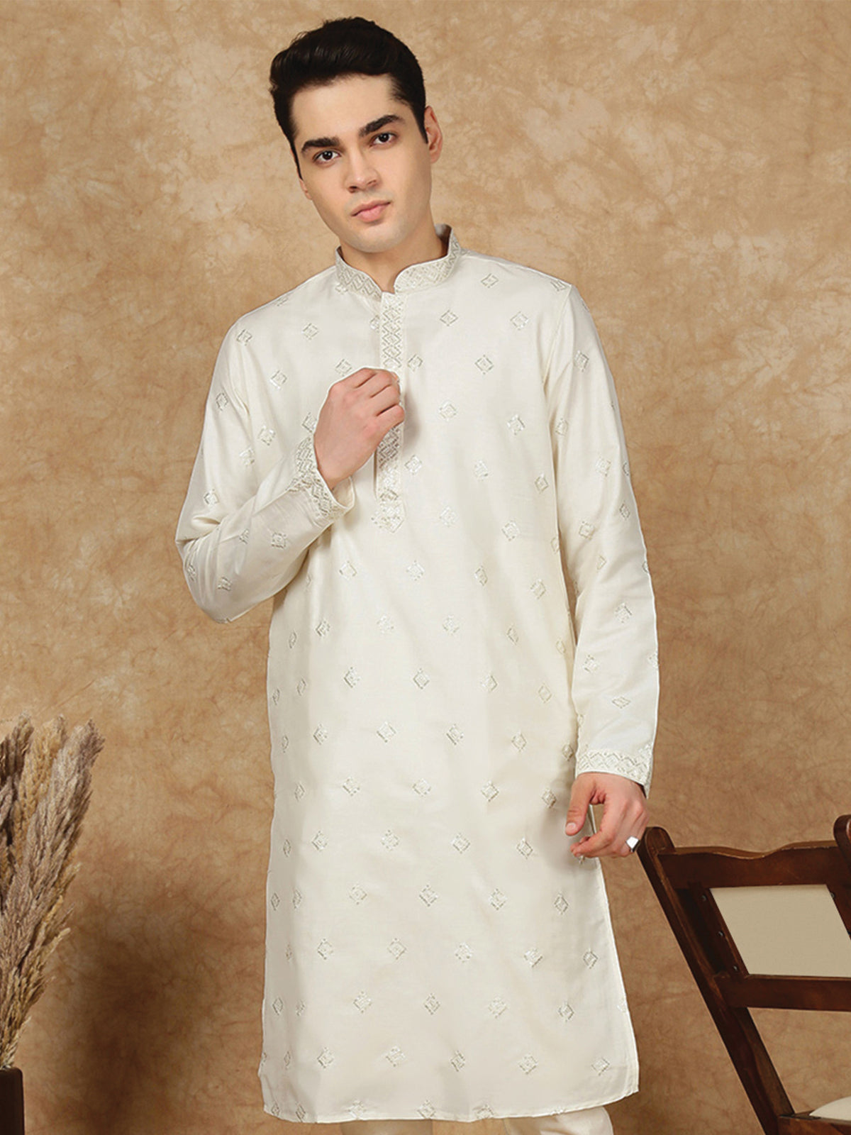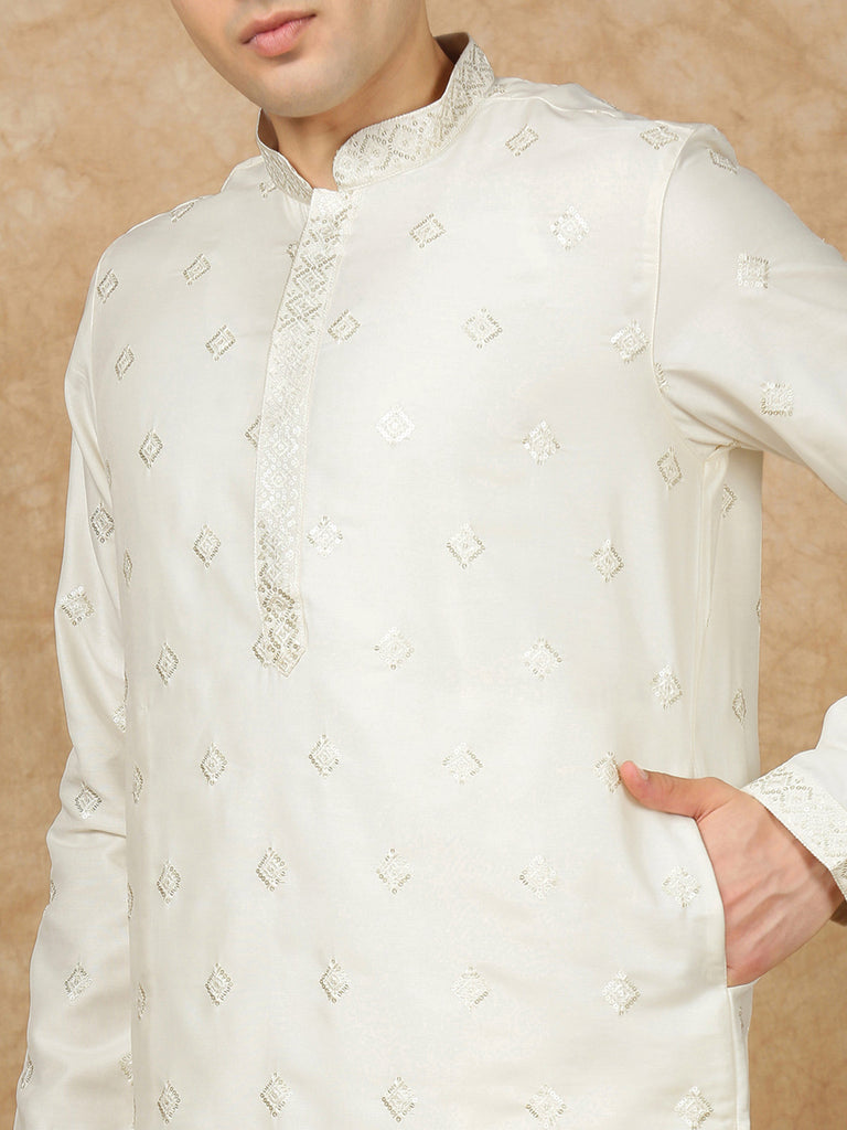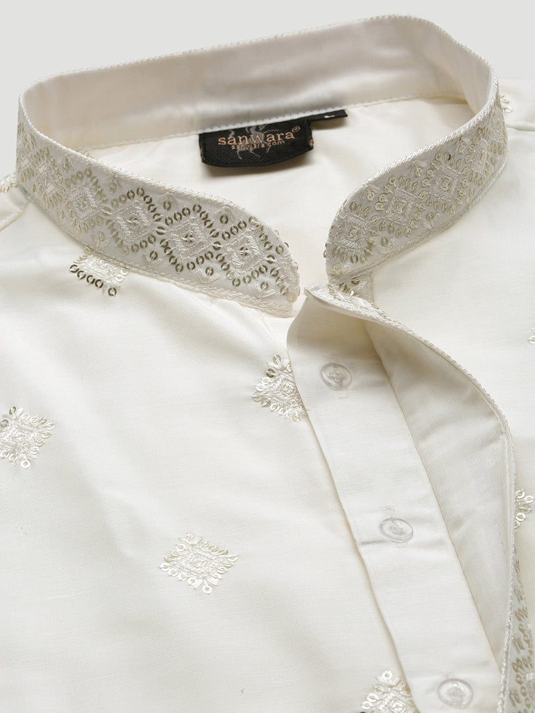 Sanwara Lavish Royal Cream Silk Blend Sequins Work Kurta for Men|A Fusion of Contemporary Design, Stylish, Comfortable, and Perfect On Sangeet Celebrations & Cultural Events