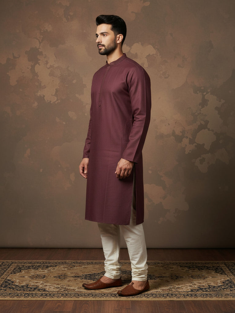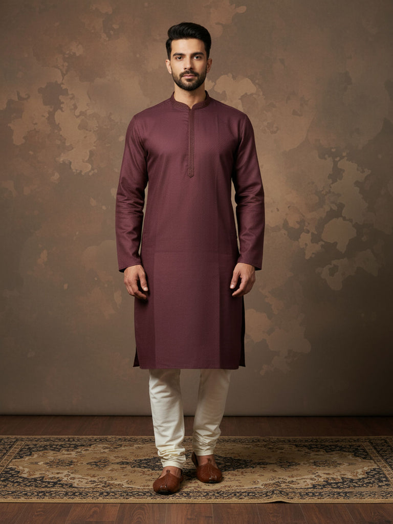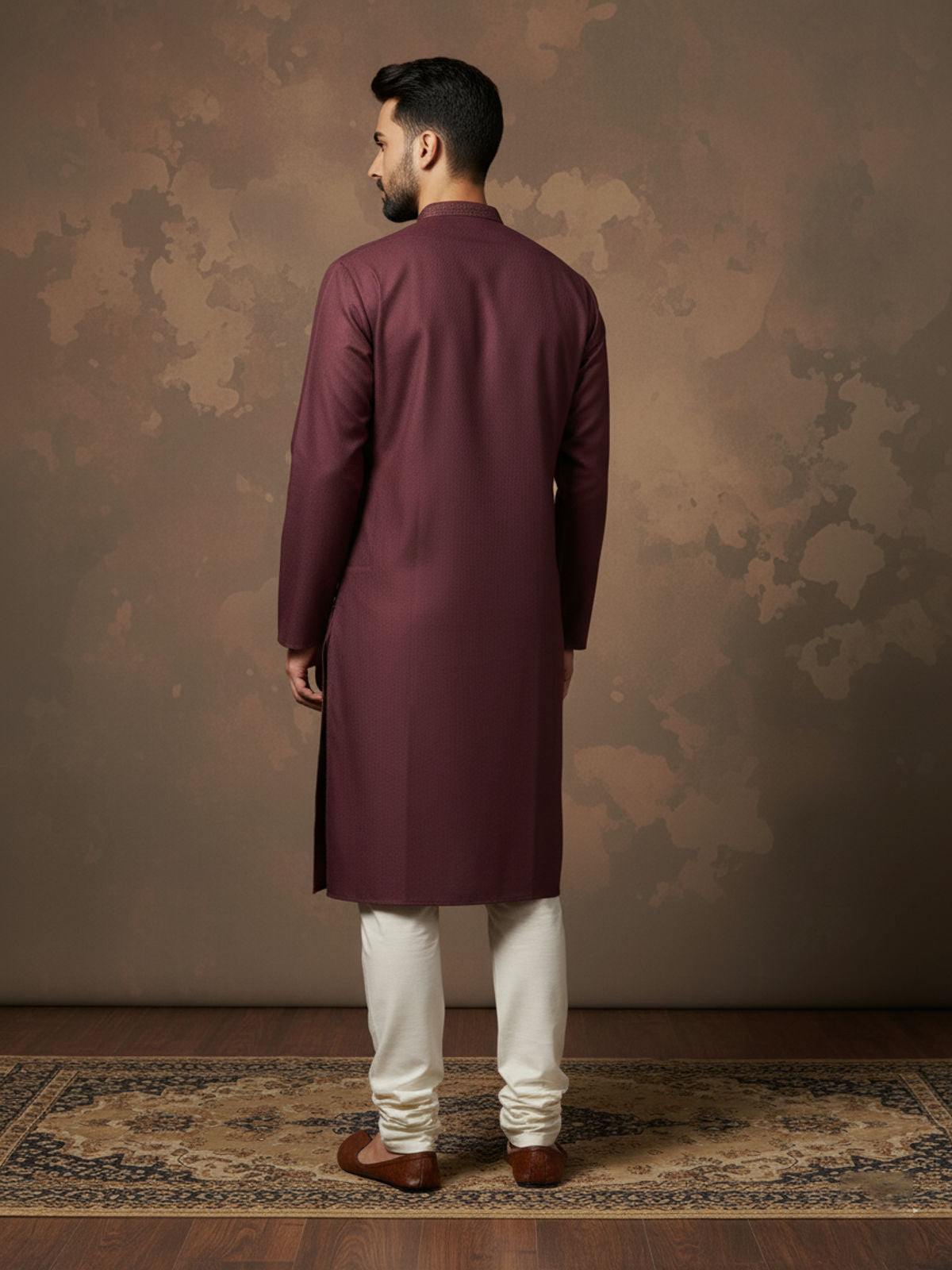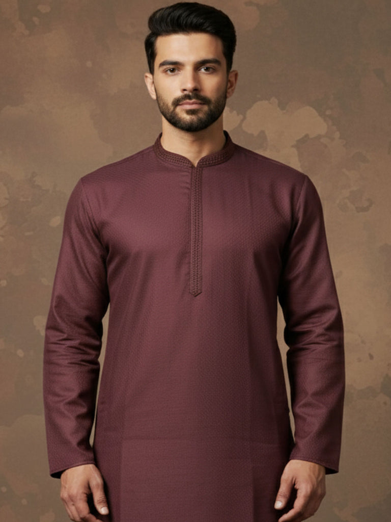 Sanwara Classic Cotton Purple Self Pattern Kurta for Men
