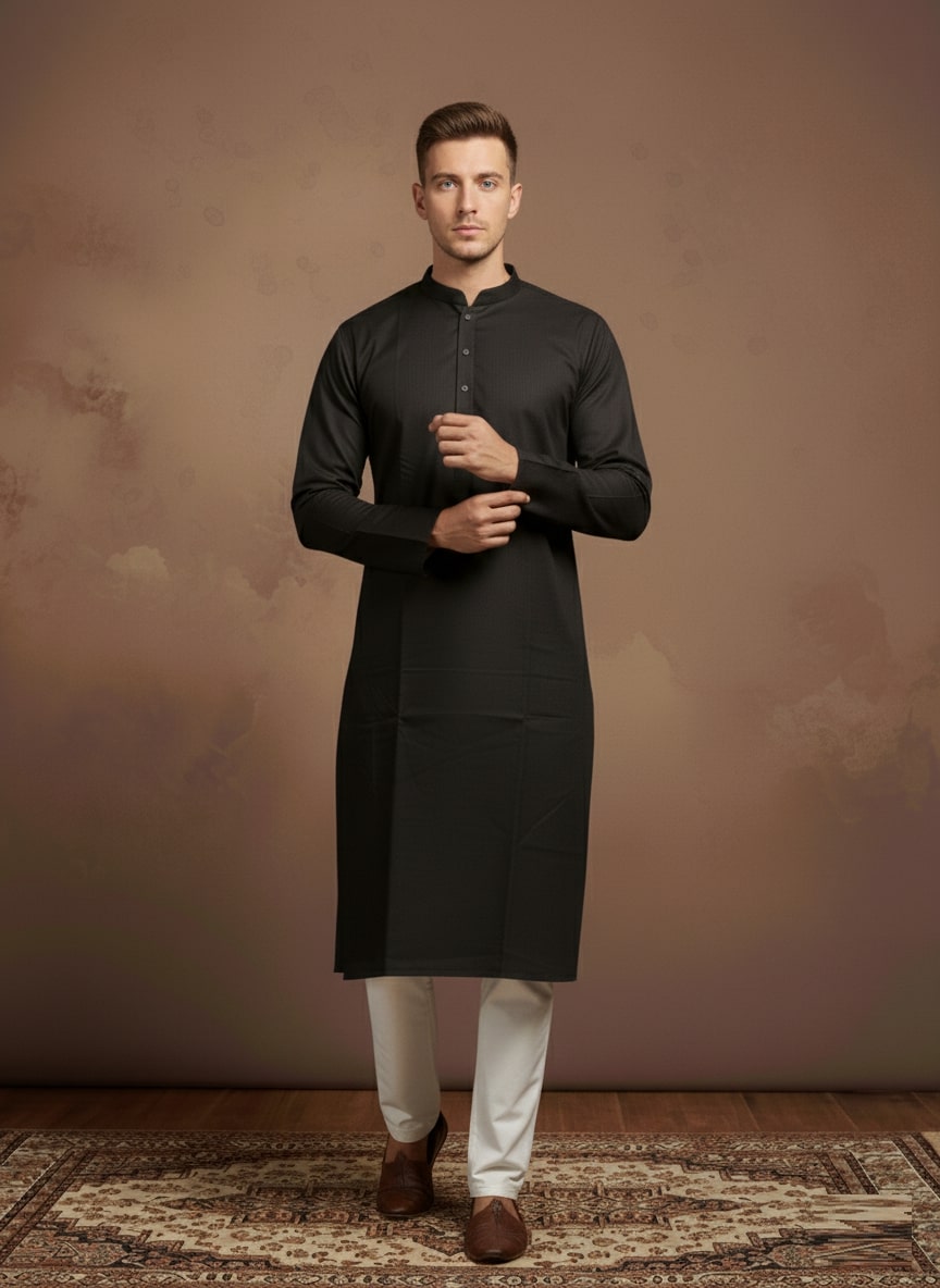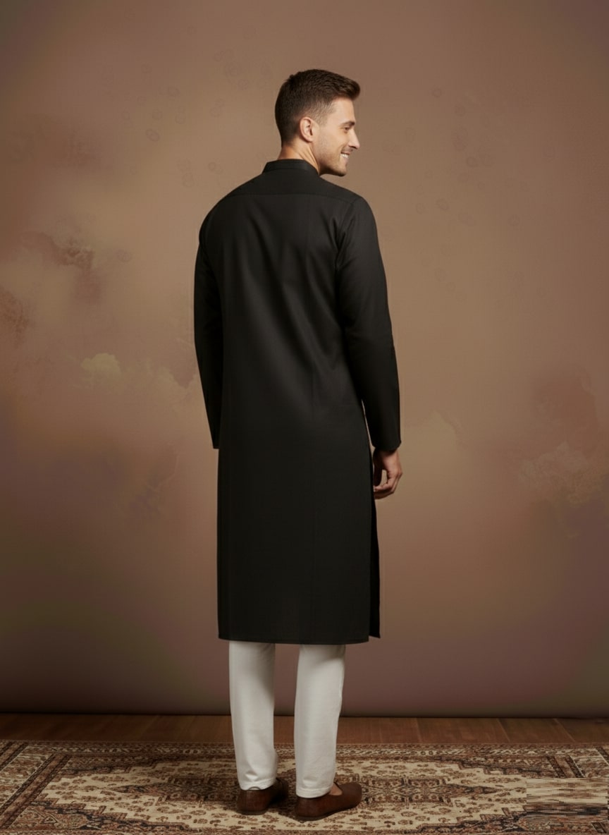 Sanwara Solid Black Textured Cotton Kurta