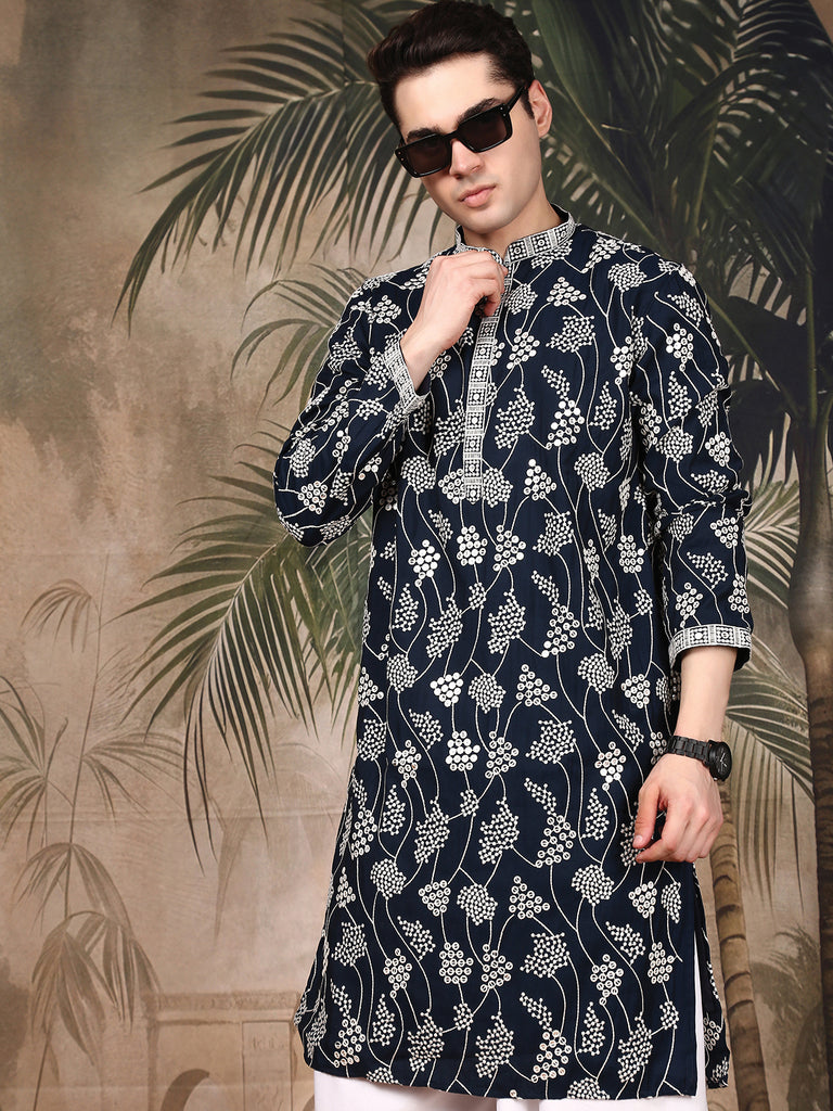 Sanwara Classic Deep Blue Kurta for Men with Minimalist Embroideryand Finest Sequins work,Ideal for Diwali, Navratri & Ethnic Wedding Wear