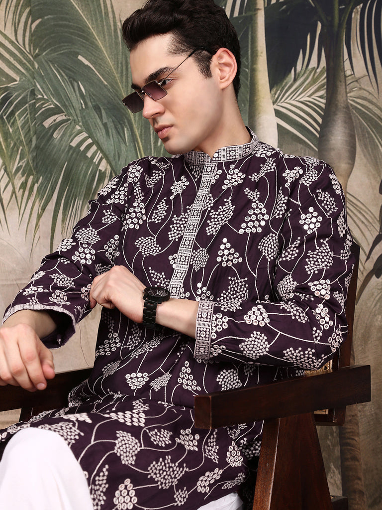 Sanwara Classic Purple Kurta for Men with Minimalist Embroideryand Finest Sequins work,Ideal for Diwali, Navratri & Ethnic Wedding Wear