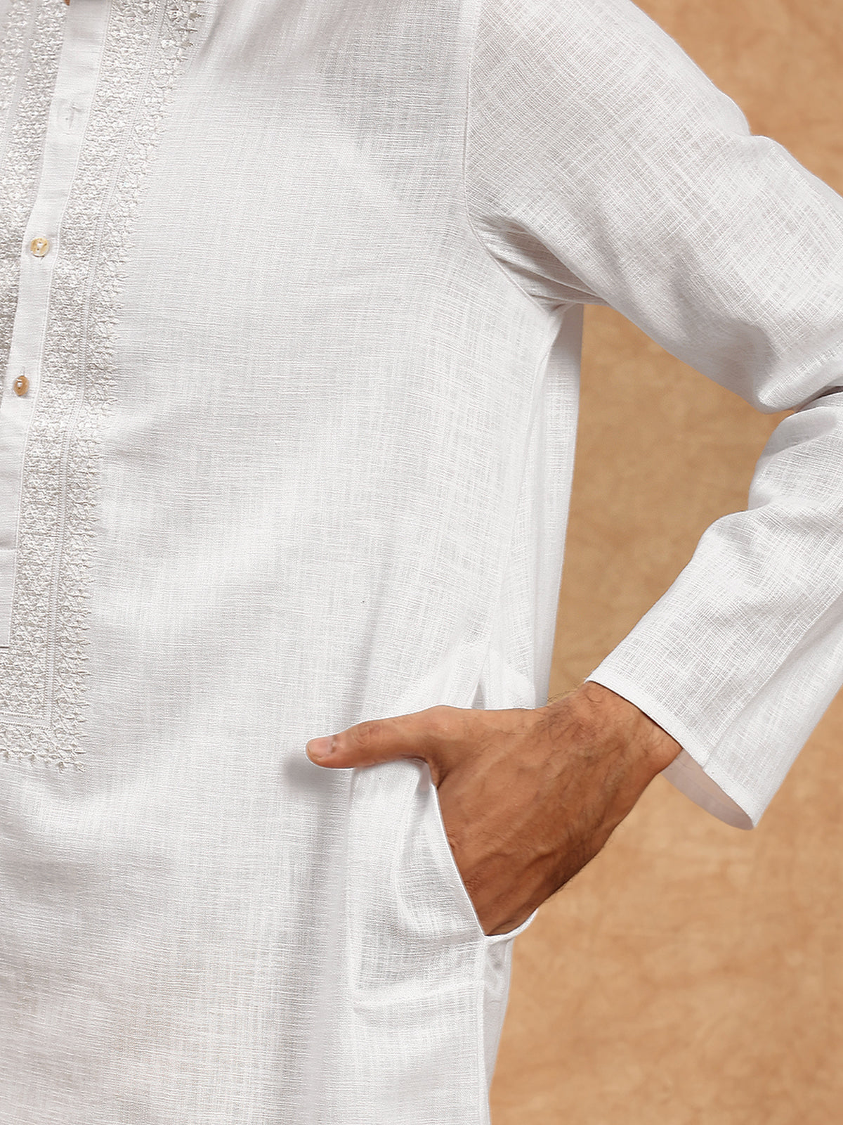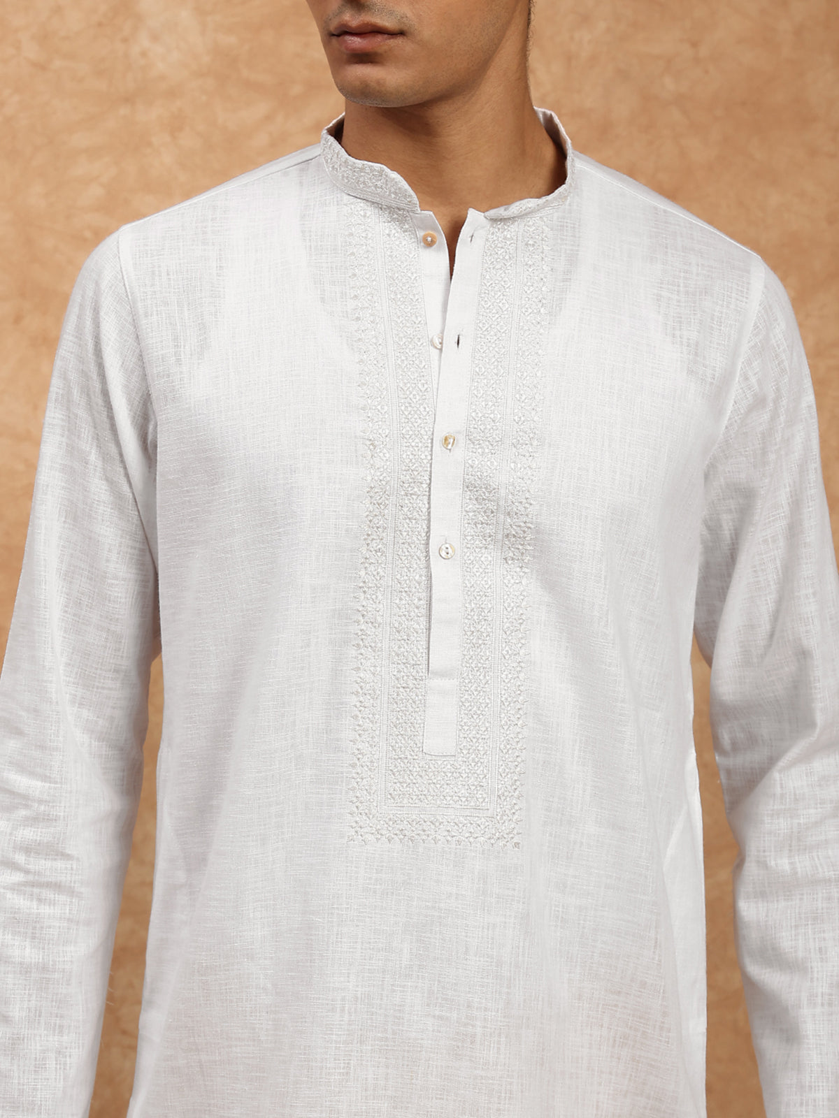 Sanwara Cotton Chikankari White Kurta Set Detailed With Front Sequins