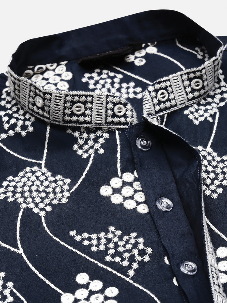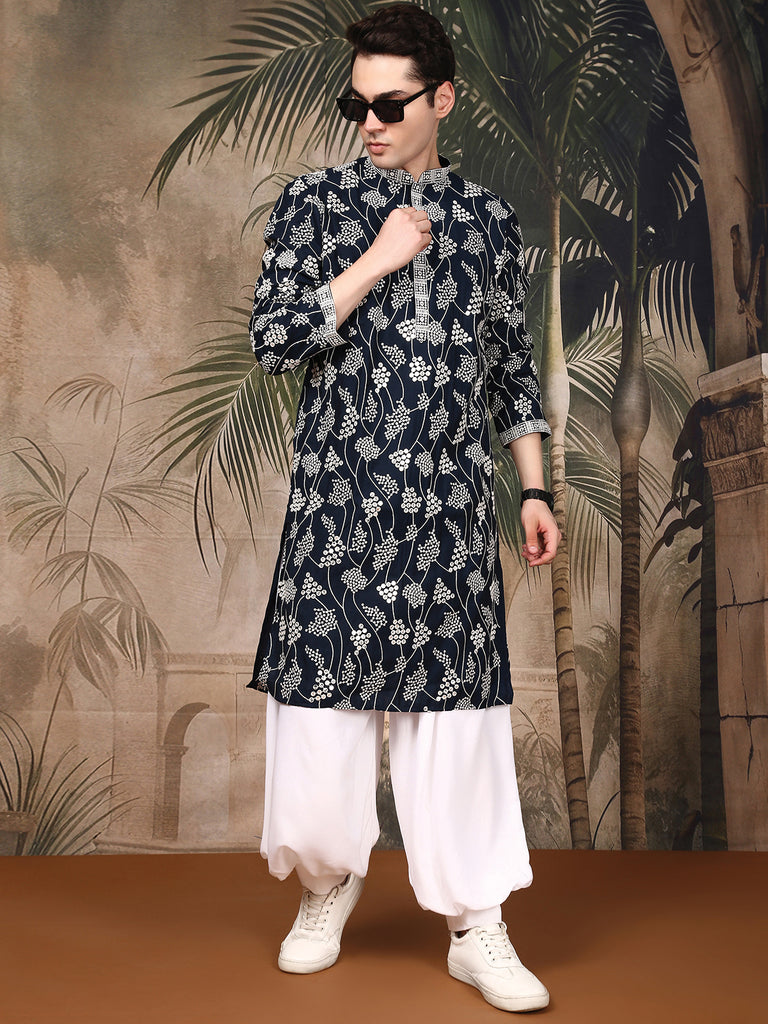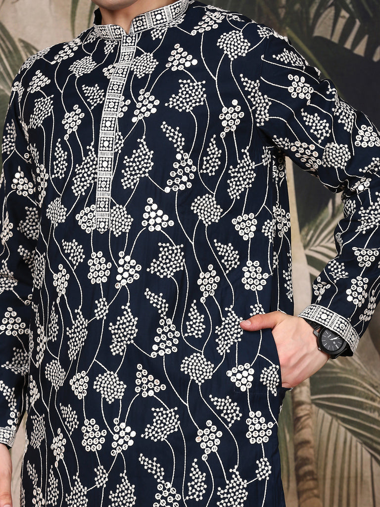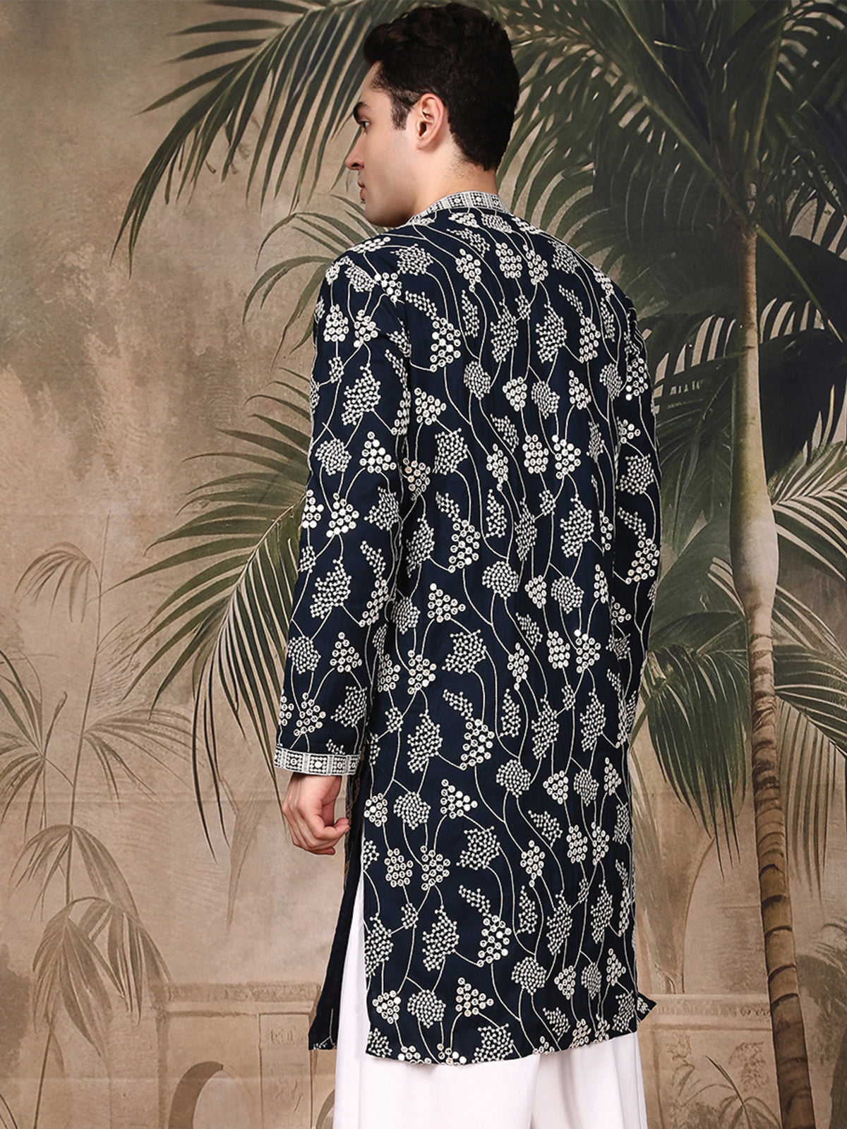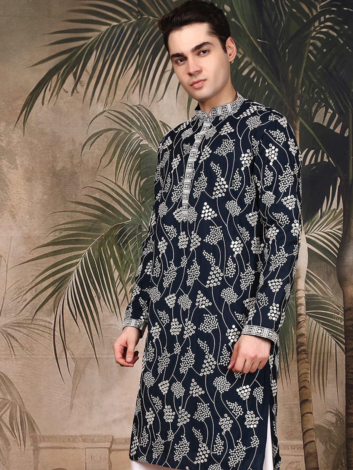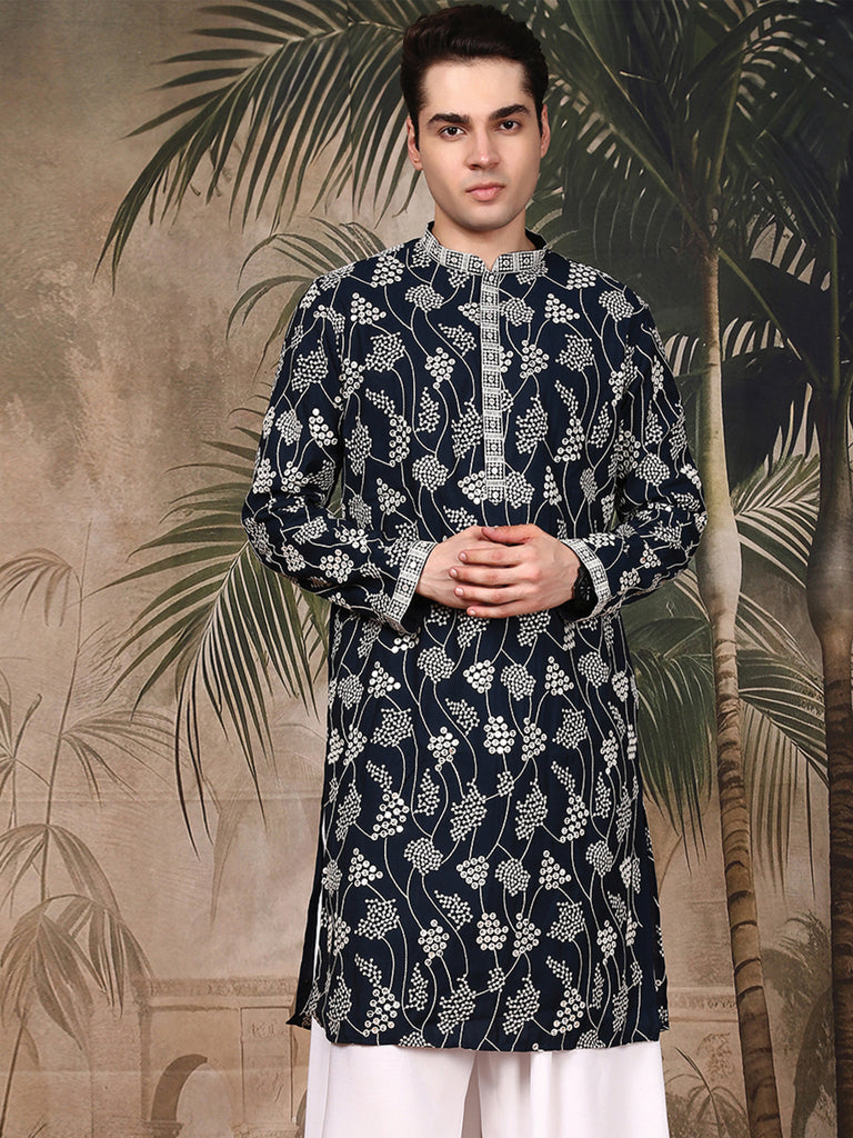 Sanwara Classic Deep Blue Kurta for Men with Minimalist Embroideryand Finest Sequins work,Ideal for Diwali, Navratri & Ethnic Wedding Wear