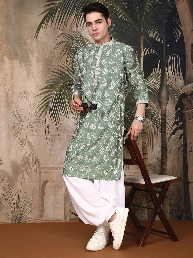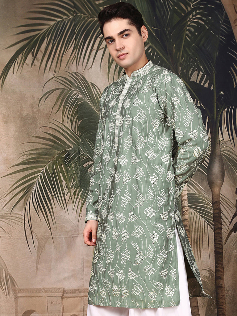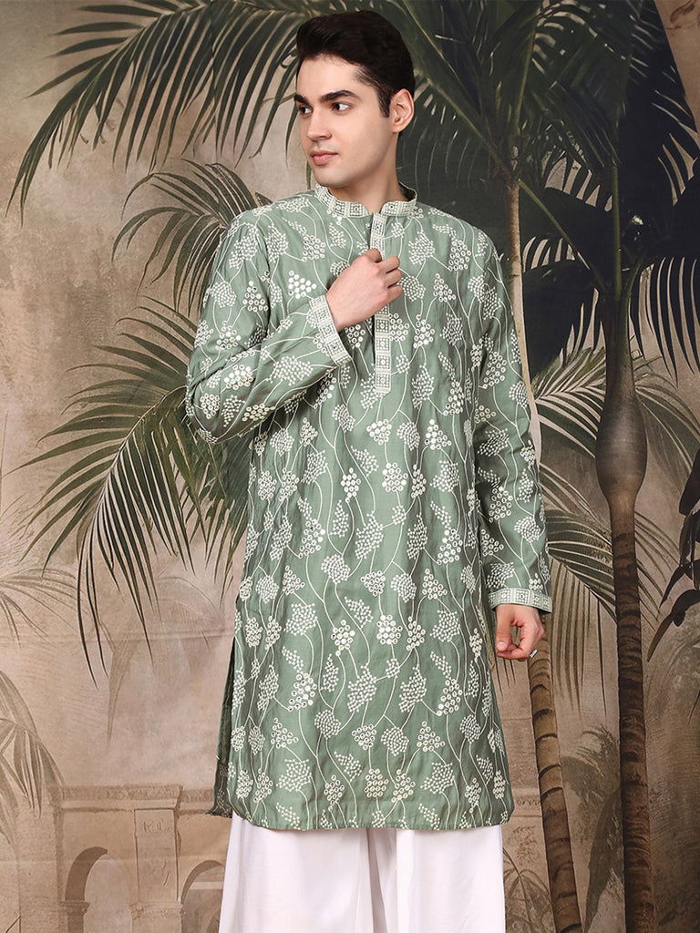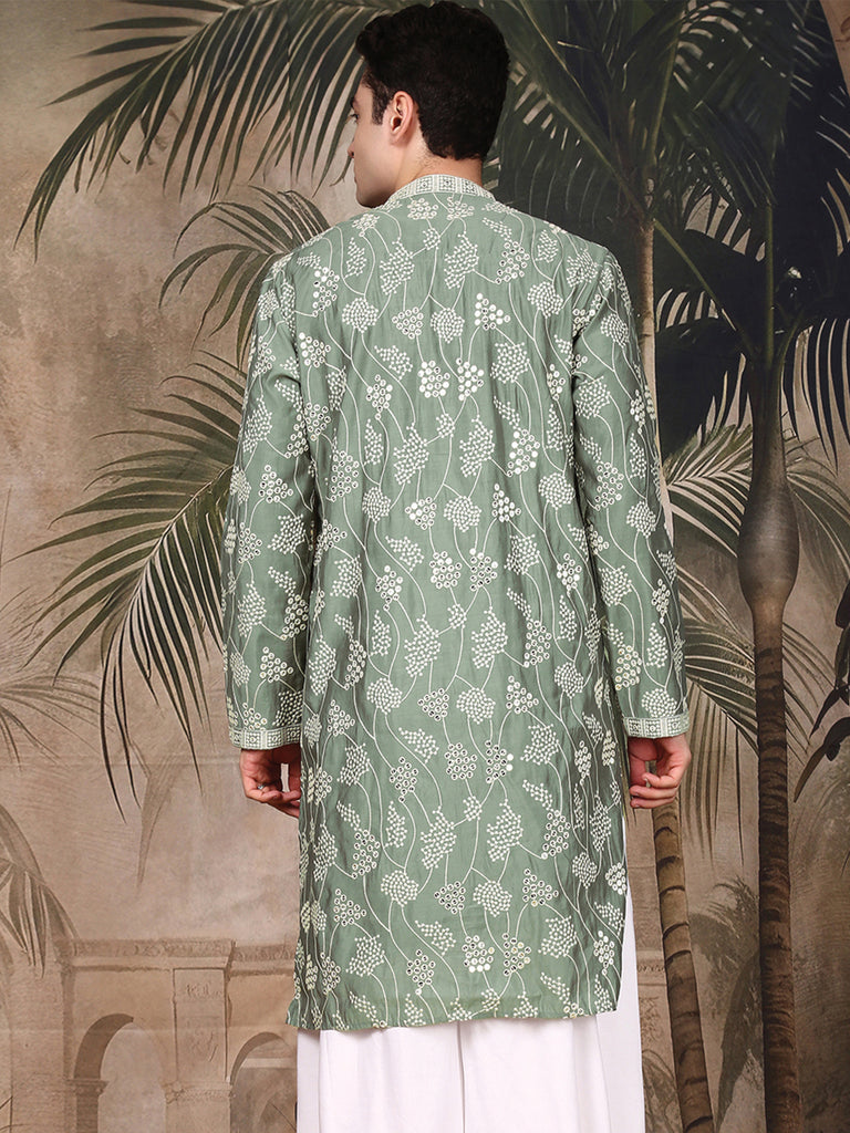 Sanwara Classic Green Kurta for Men with Minimalist Embroideryand Finest Sequins work,Ideal for Diwali, Navratri & Ethnic Wedding Wear