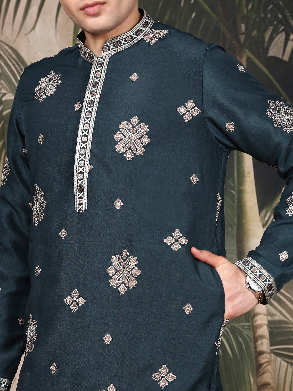 Sanwara Presents Denim Blue Men’s Kurta Crafted In Silk Blend And Sequins Ideal For Wedding Navratri And Diwali Celebrations