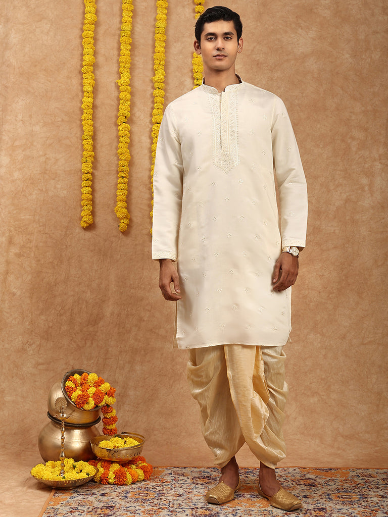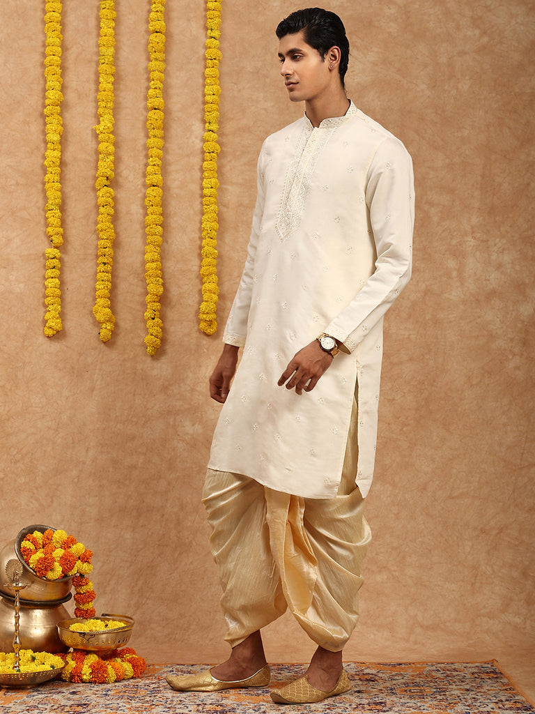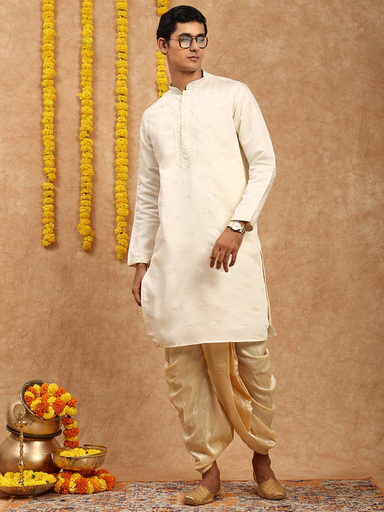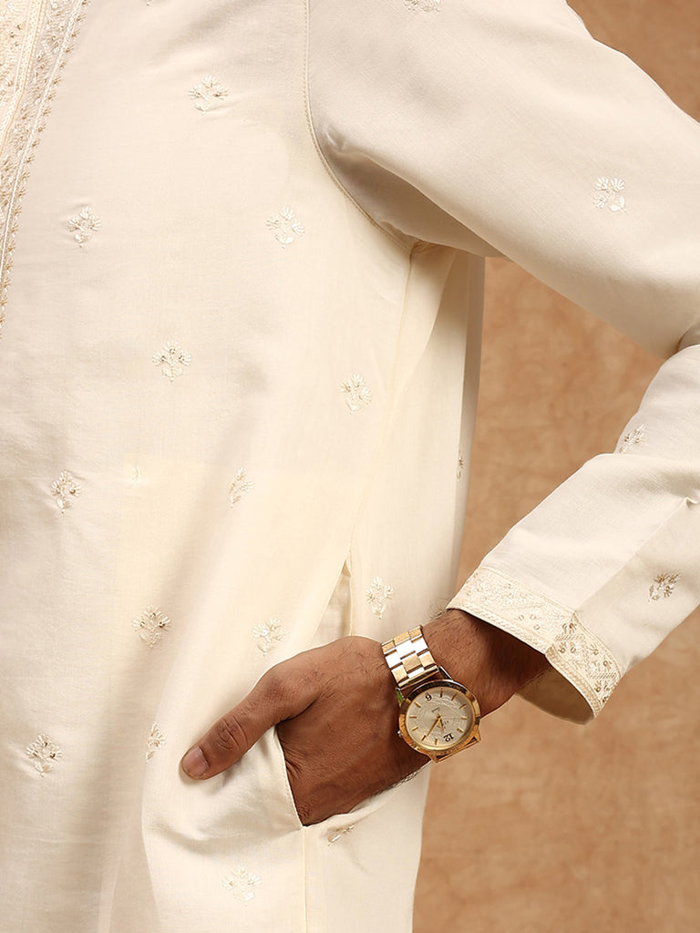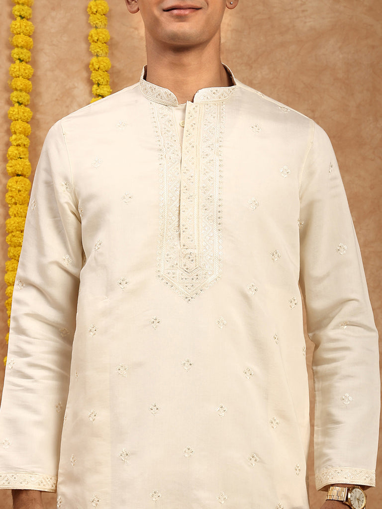 Sanwara Silk Chikankari Off White Kurta Detailed With Sequins Work