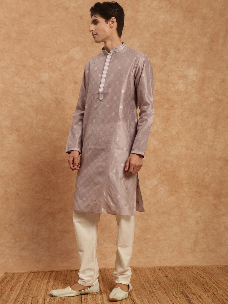 Sanwara Men’s Voilet Woven Designer Jaquard Kurta