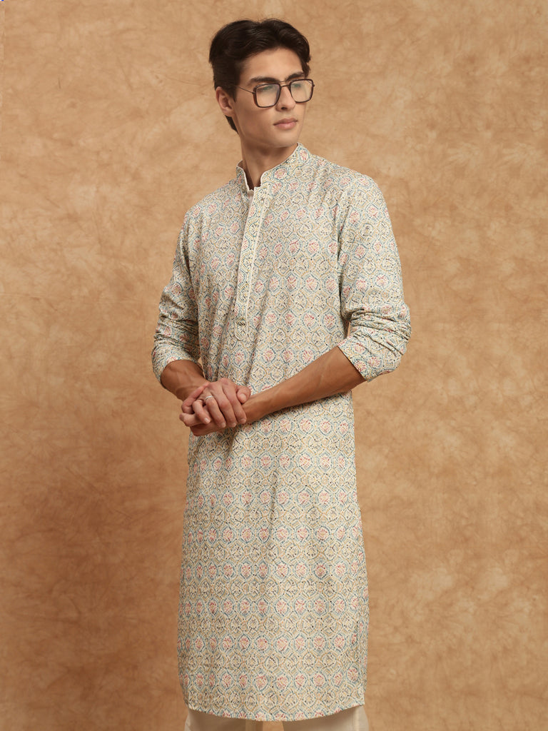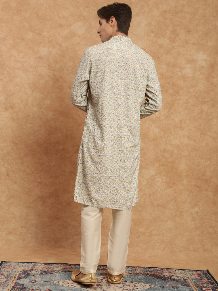 Men's Heritage Embroidered Work Multicolor Kurta In Rayon by Sanwara