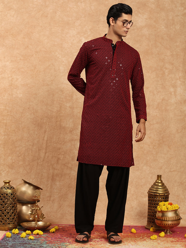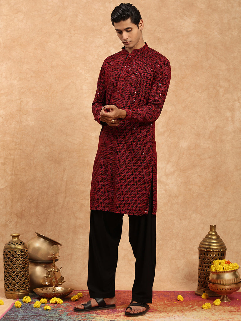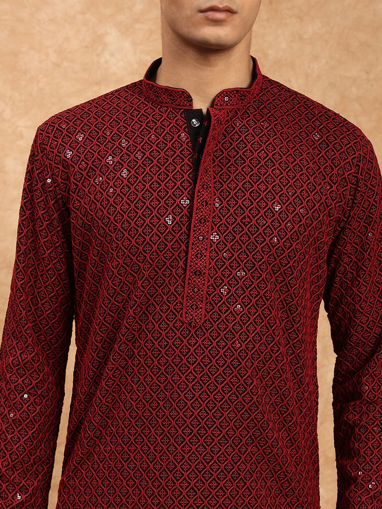Sanwara Premium Rayon Stylish Chikankari Red Kurta for Men