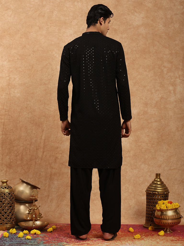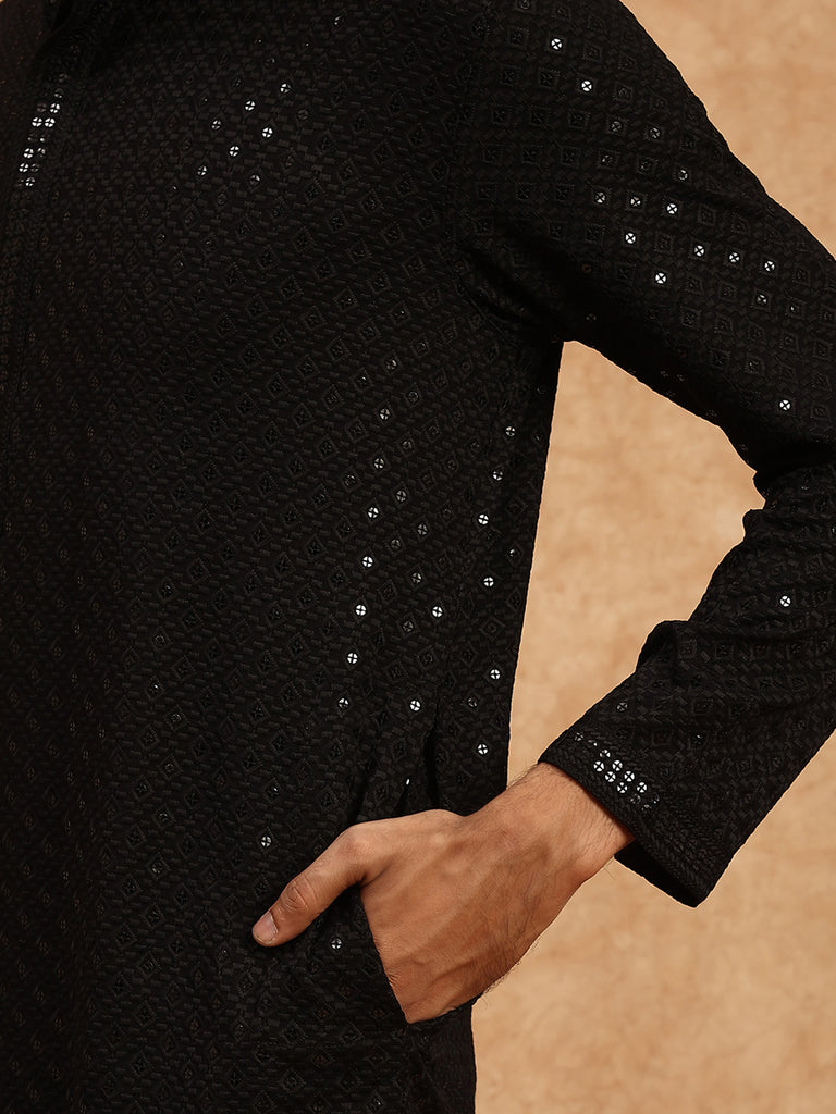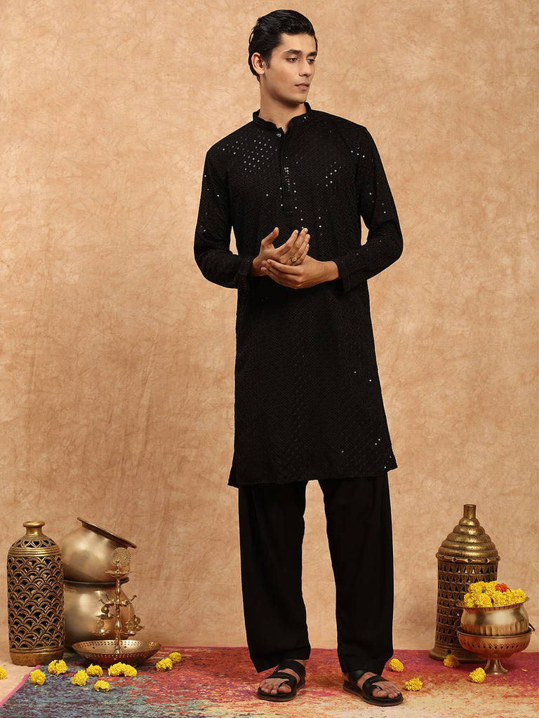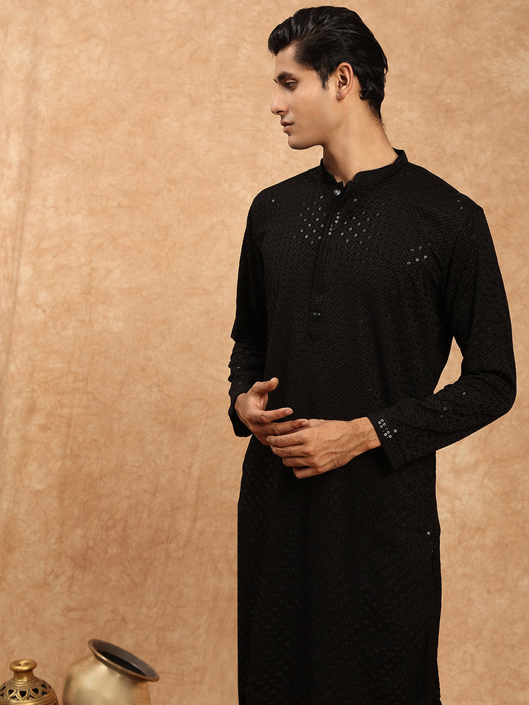 Sanwara Men's Classic Black Chikankari Kurta With Sequins Detailing for Every Occasion
