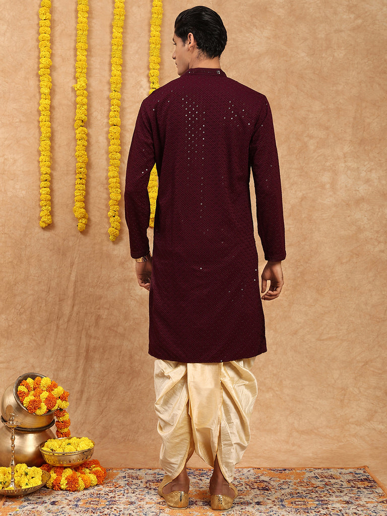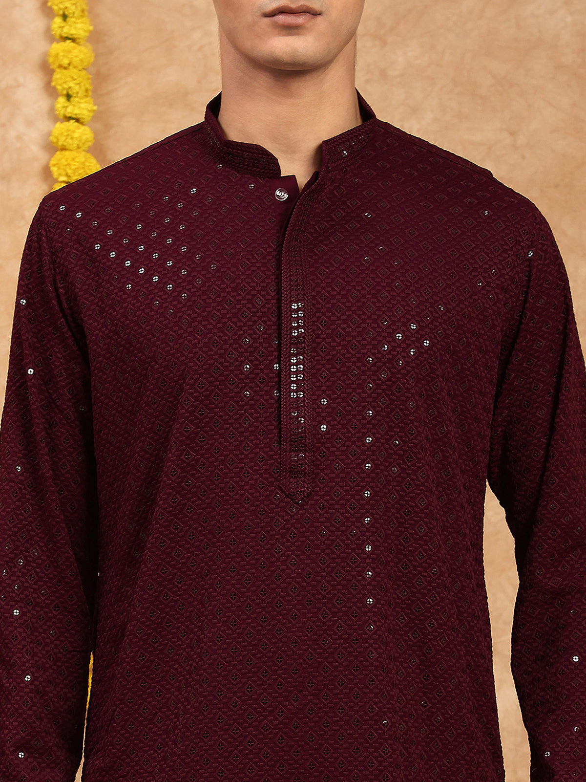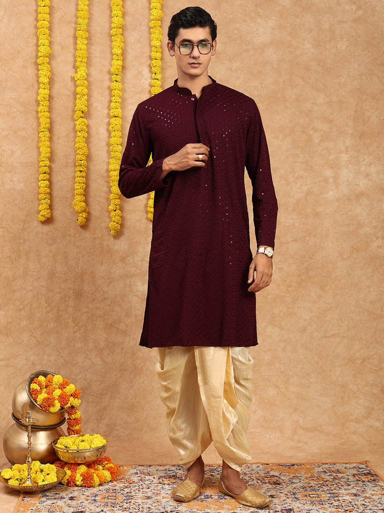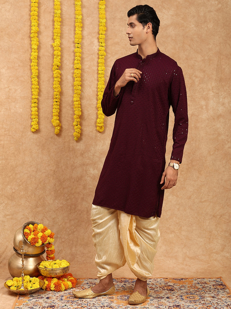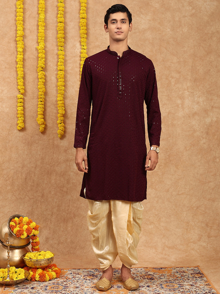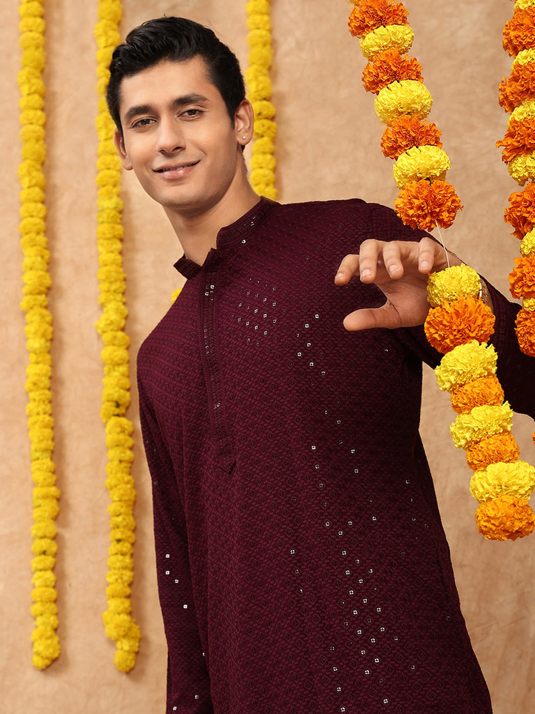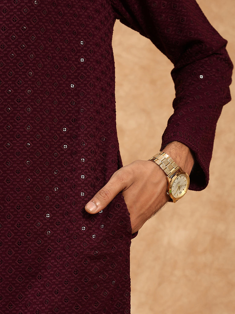 Sanwara Men's Classic Purple Chikankari Kurta With Sequins Detailing for Every Occasion