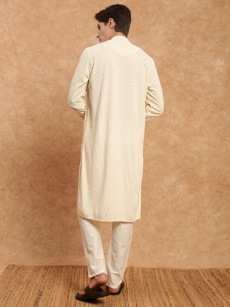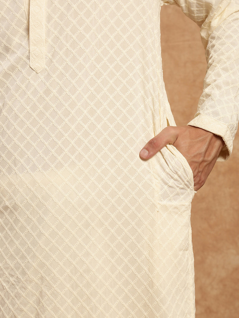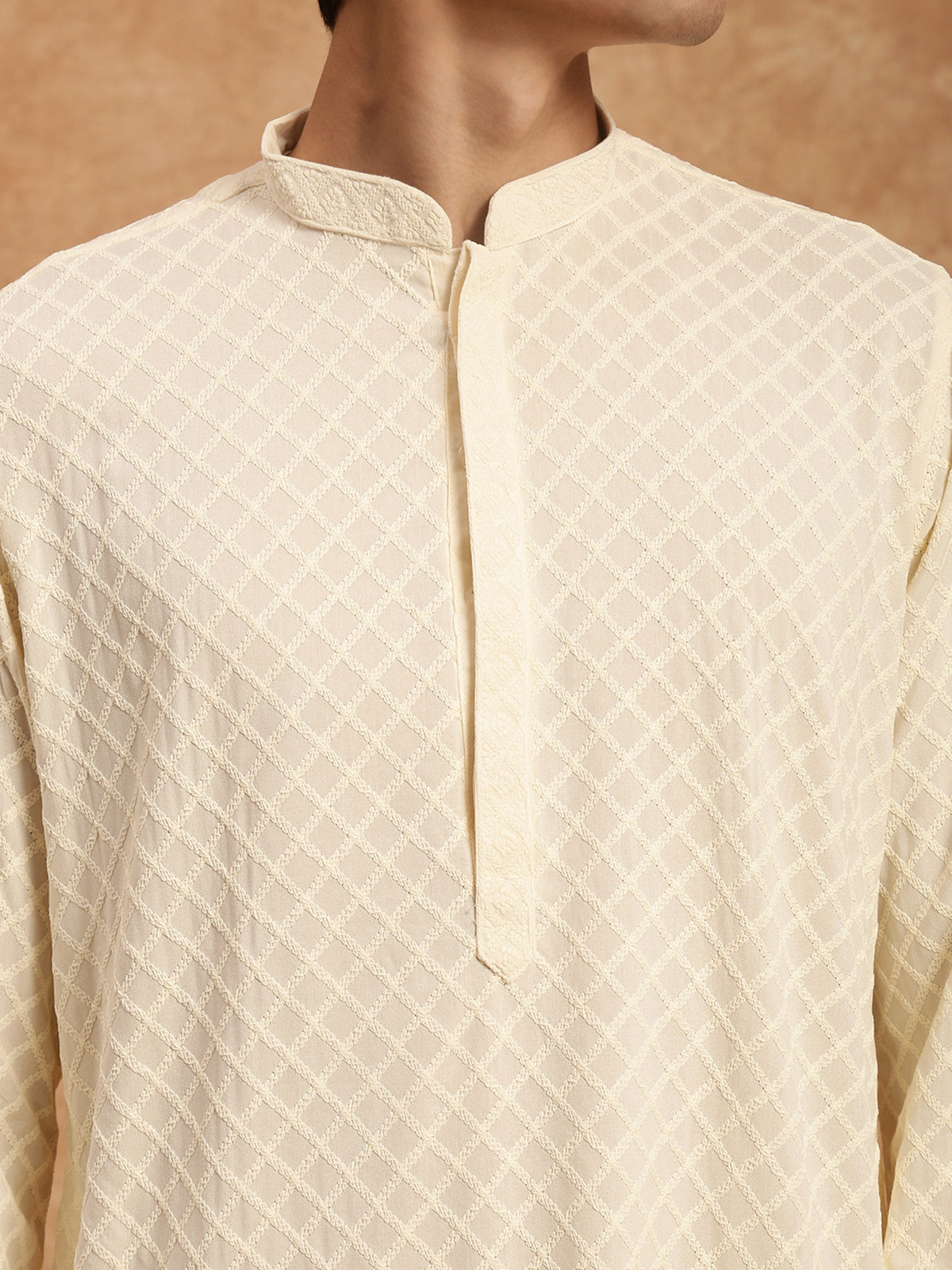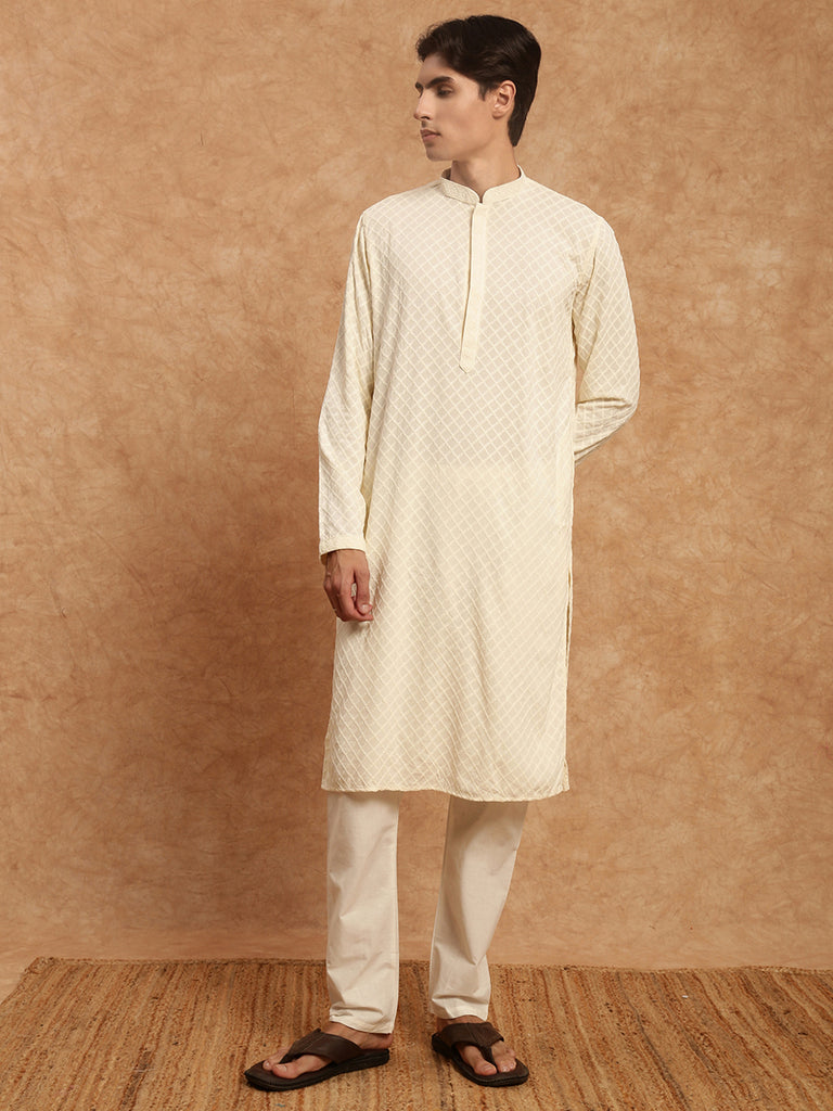 Sanwara Men's Rayon Ethnic Solid Off White Chikankari Work Stylish Festival Wear Kurta