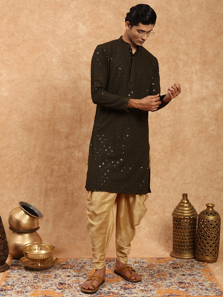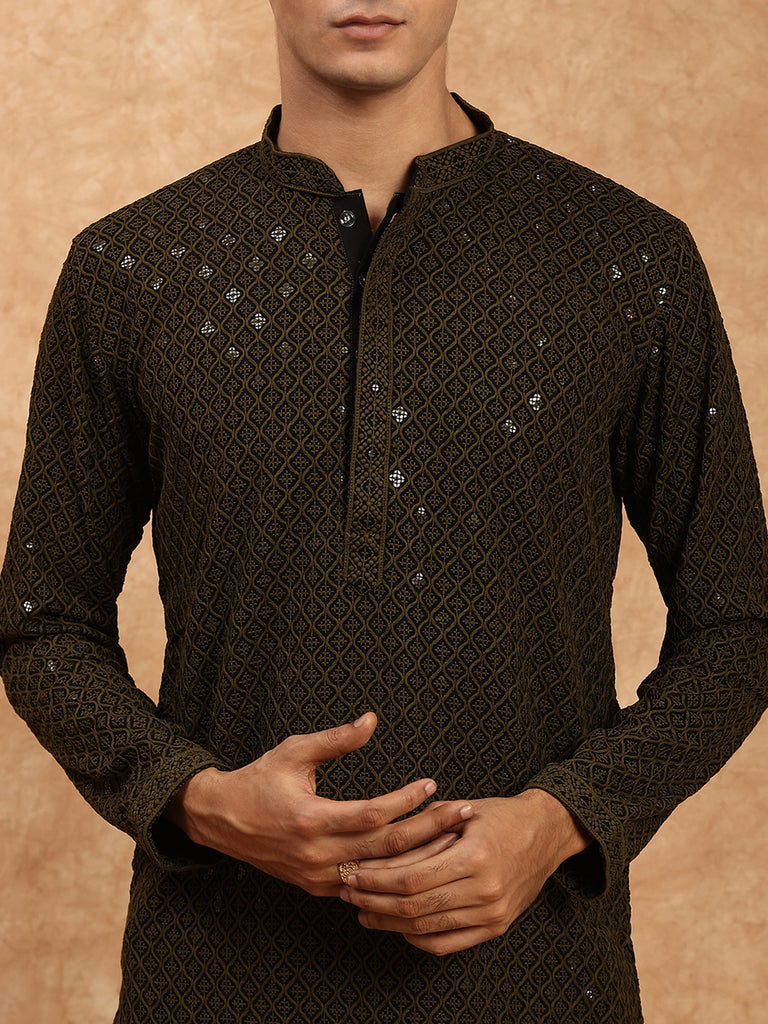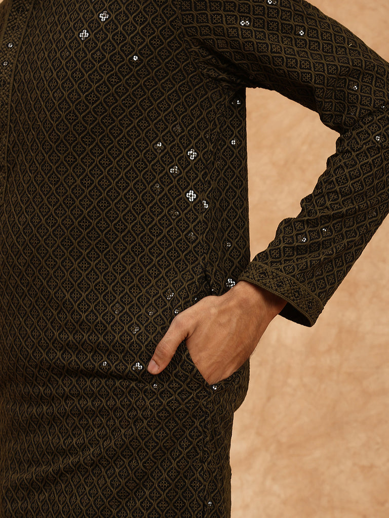 Sanwara Premium Rayon Stylish Chikankari Olive Green Kurta Set for Men