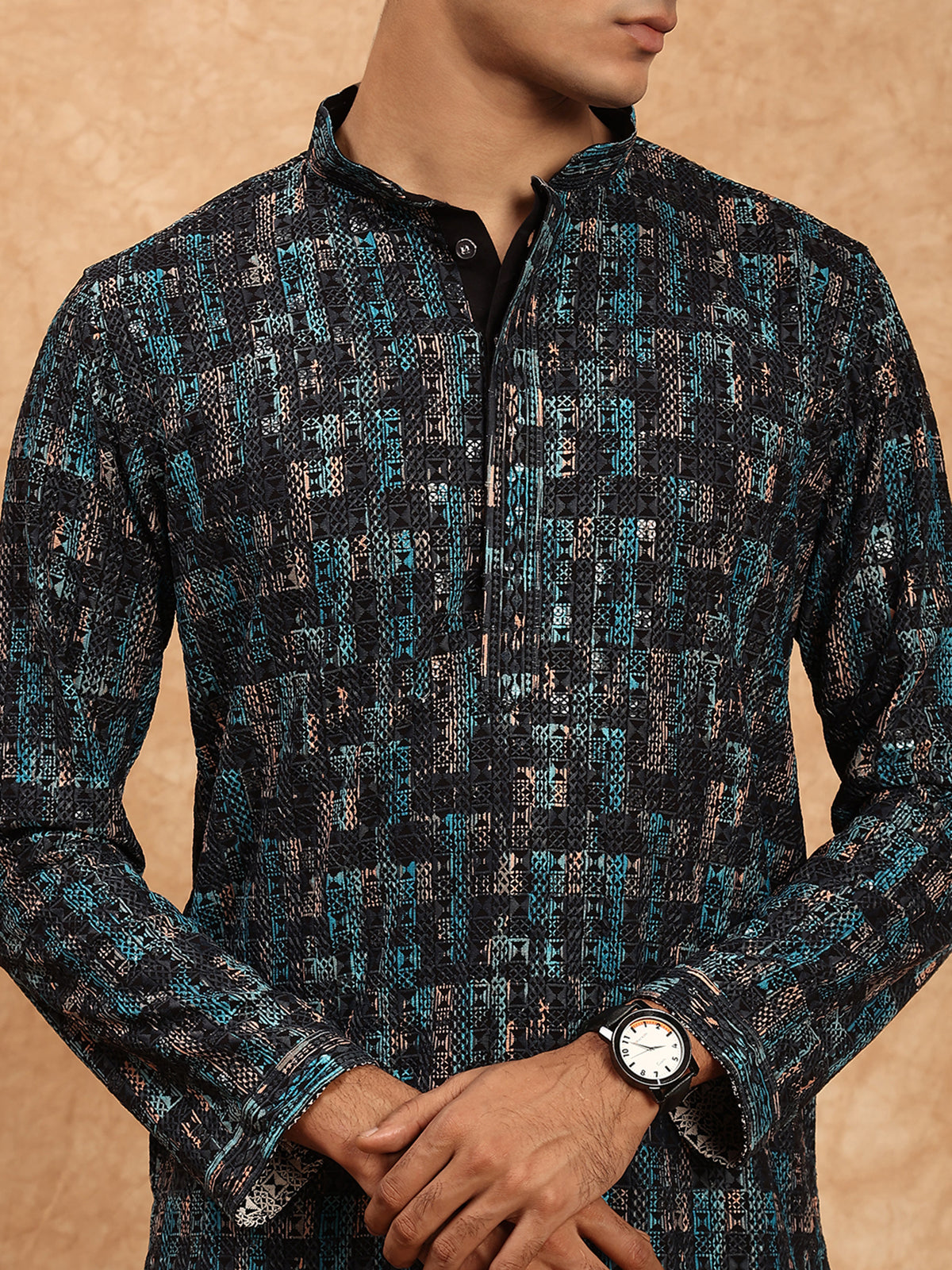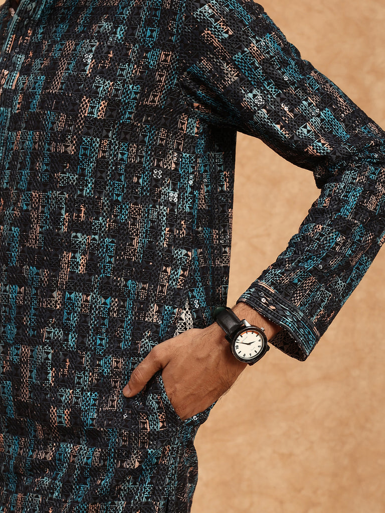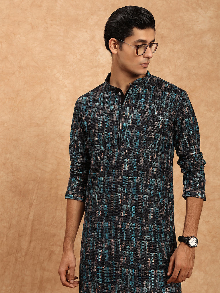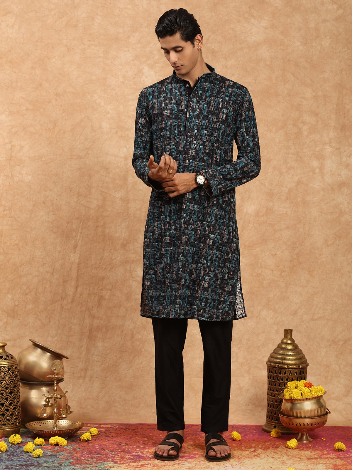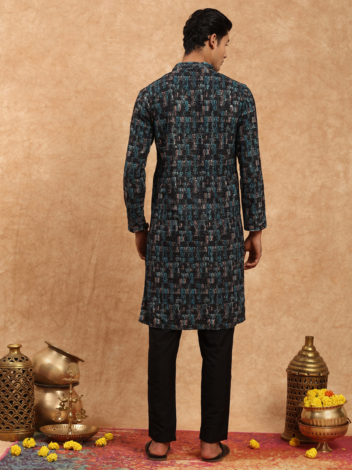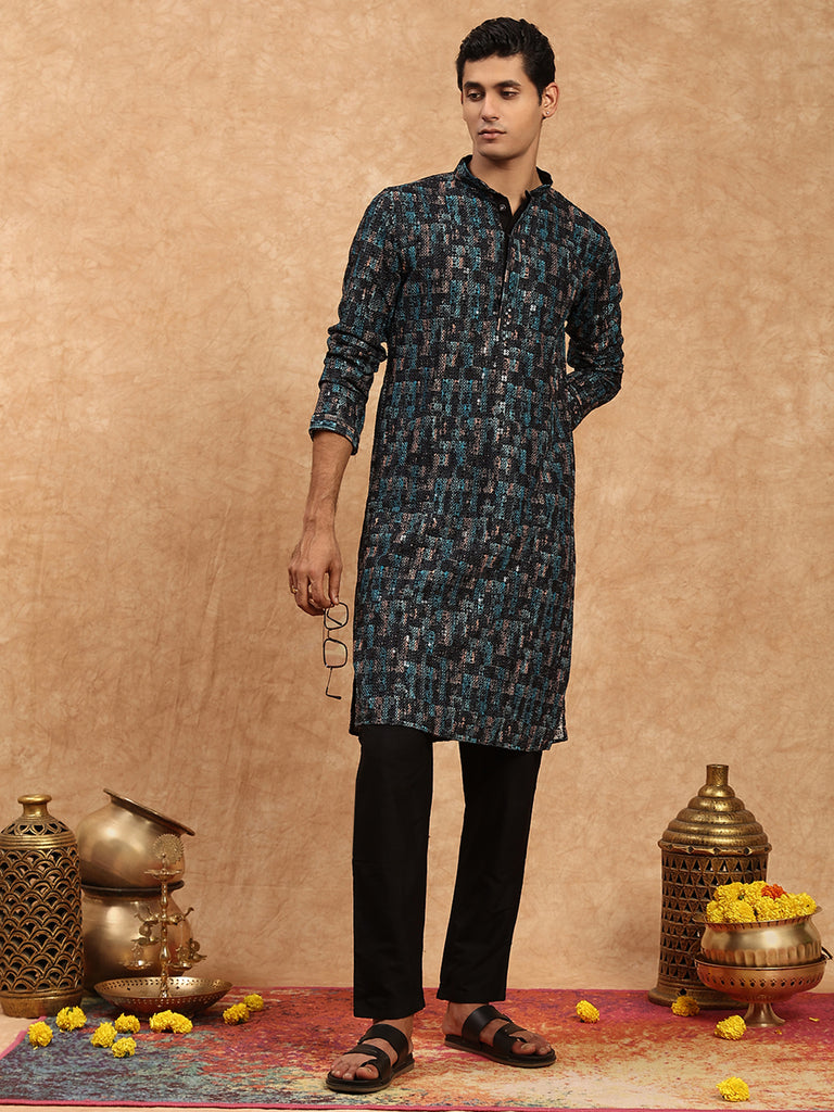 Sanwara Premium Rayon Chikankari Firozi Kurta Set With seuins Details for Men