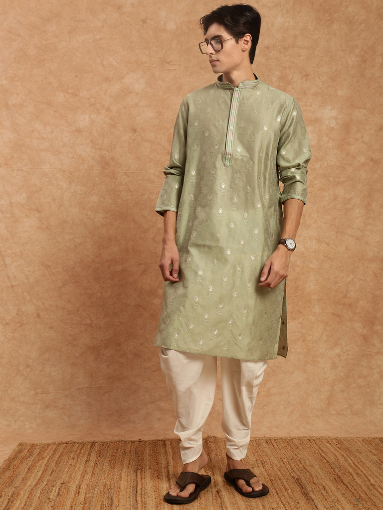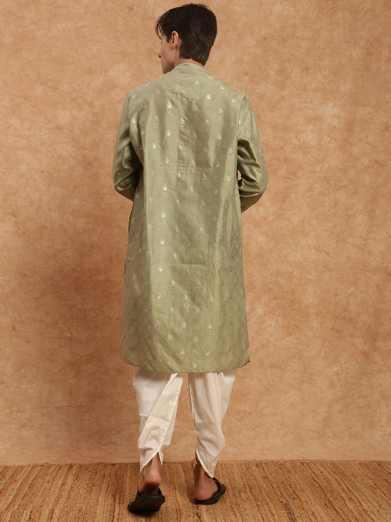 Sanwara Men’s Green Woven Designer Jaquard Kurta Set